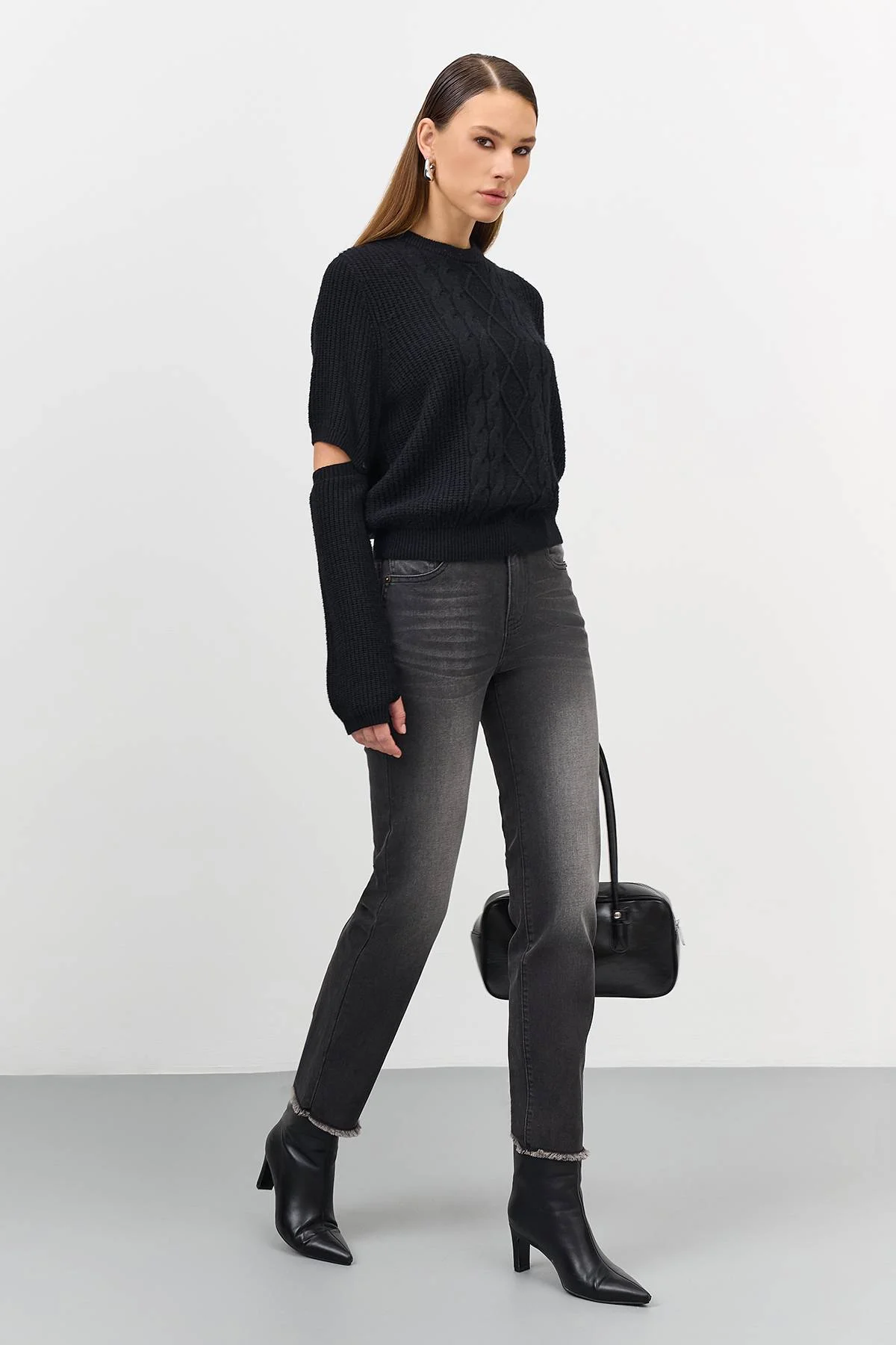 Стильный прямой крой, слегка зауженный к низу, подчеркивает стройность силуэта. Деликатная варка и бахрома по низу добавляют образу небрежность. Удобная посадка и скрытые карманы в швах делают эту модель практичным выбором для повседневных образов.