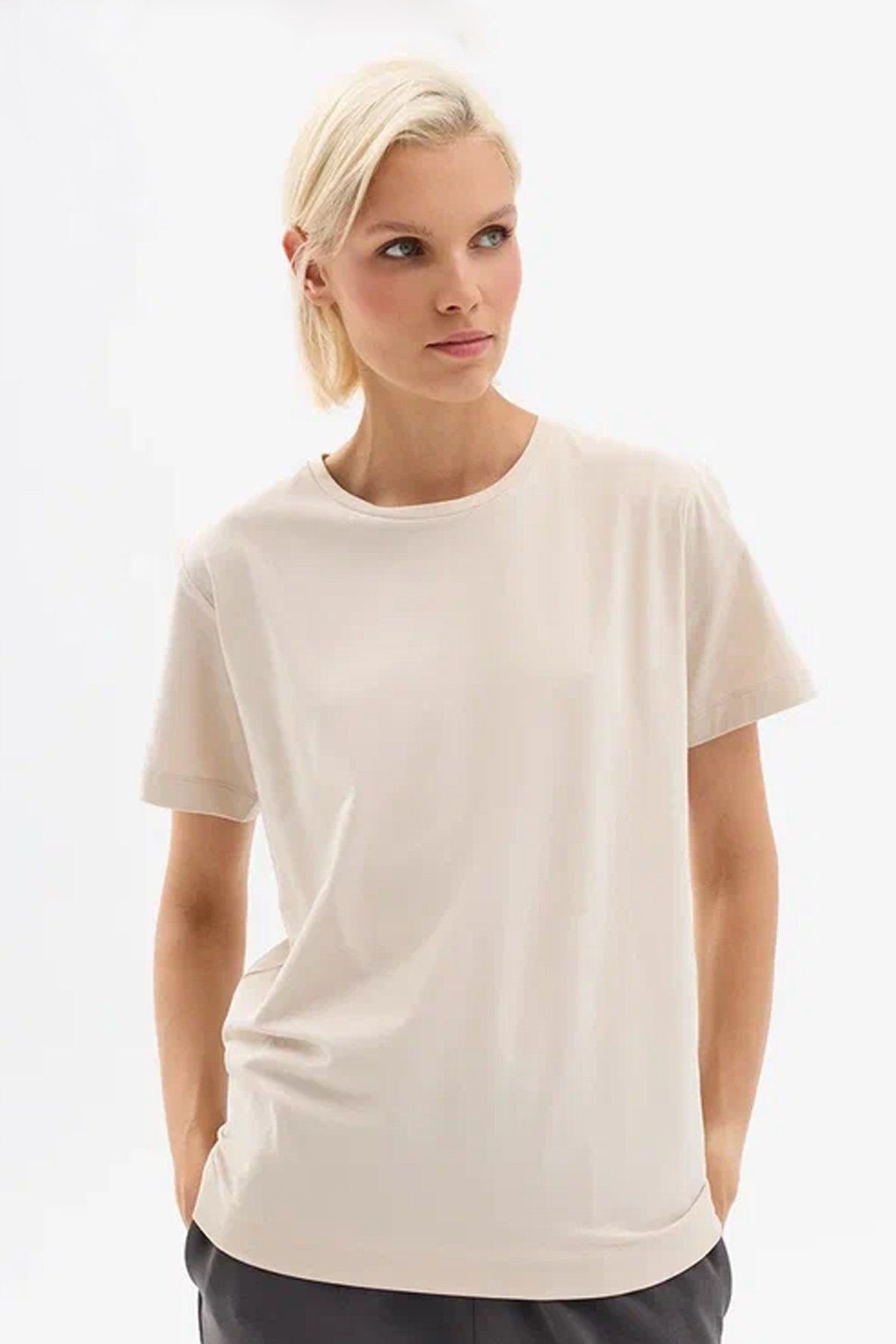 Базовая футболка из хлопкового трикотажа в бежевом цвете 50807/2, 48р