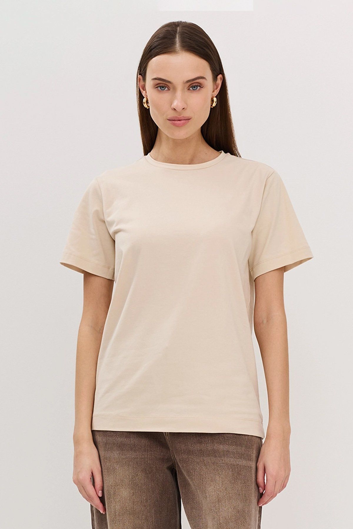 Базовая футболка из хлопкового трикотажа в бежевом цвете 53810/2, 44р