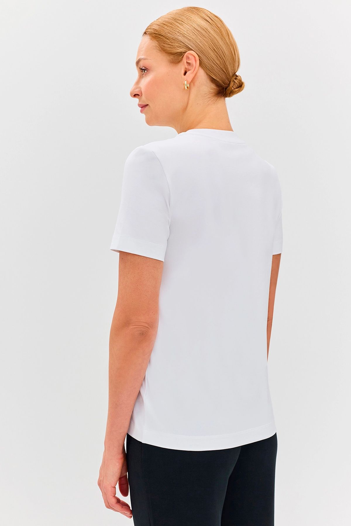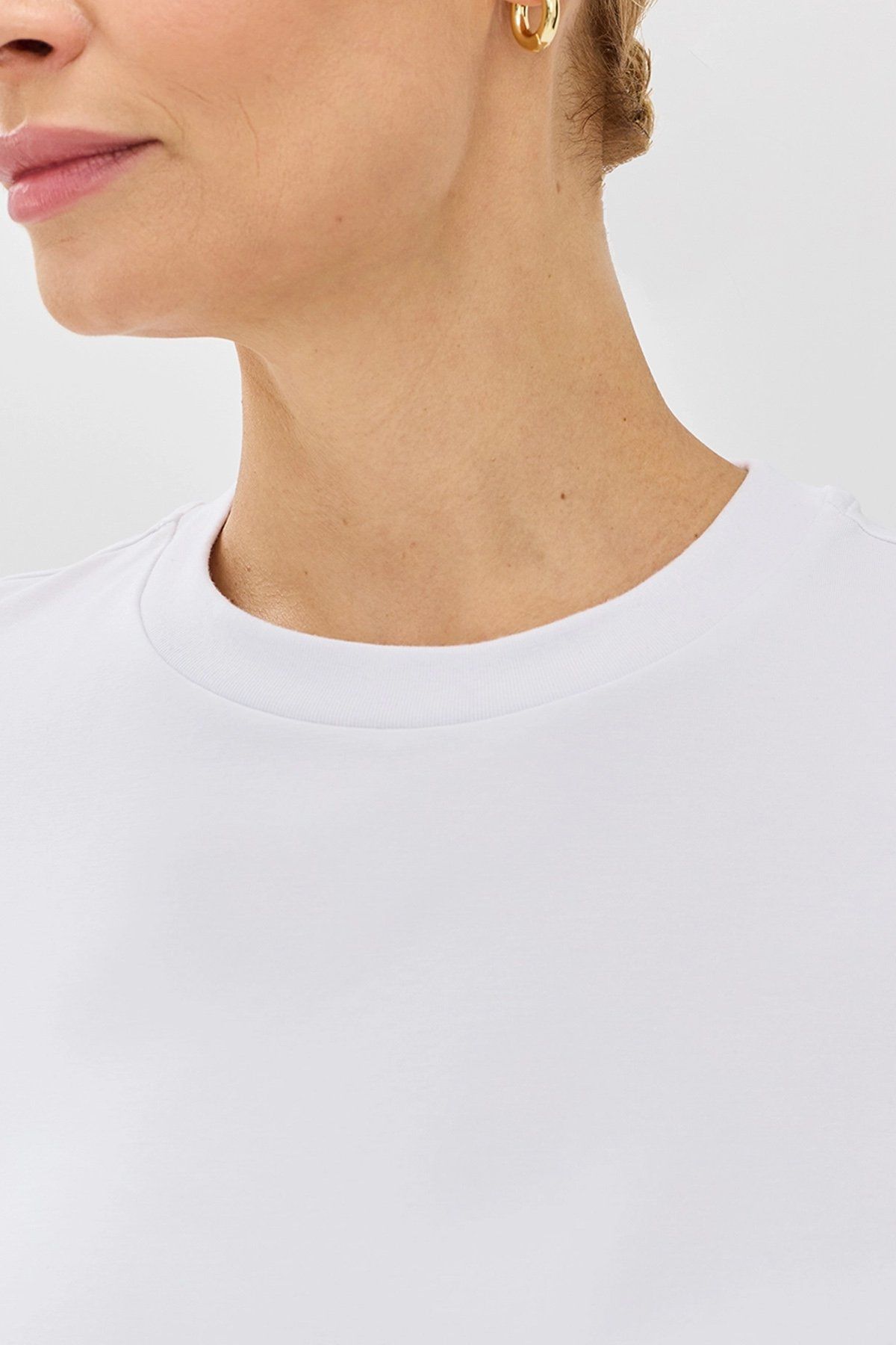 Базовая футболка из трикотажа со смесовым составом. Модал, входящий в состав, обеспечивает мягкость и гладкость ткани. Короткие рукава и круглый вырез горловины комфортно ощущаются в летний период. Прямой крой подойдёт практически на любой тип фигуры. Футболку можно носить как самостоятельную позицию, так и сочетать с различными жакетами, кардиганами для создания эффекта многослойности. Данная модель отлично сочетается с различными видами низа (брюки, джинсы).
