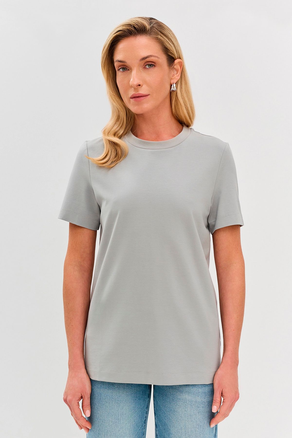 Базовая футболка в сером цвете с коротким рукавом, 46р