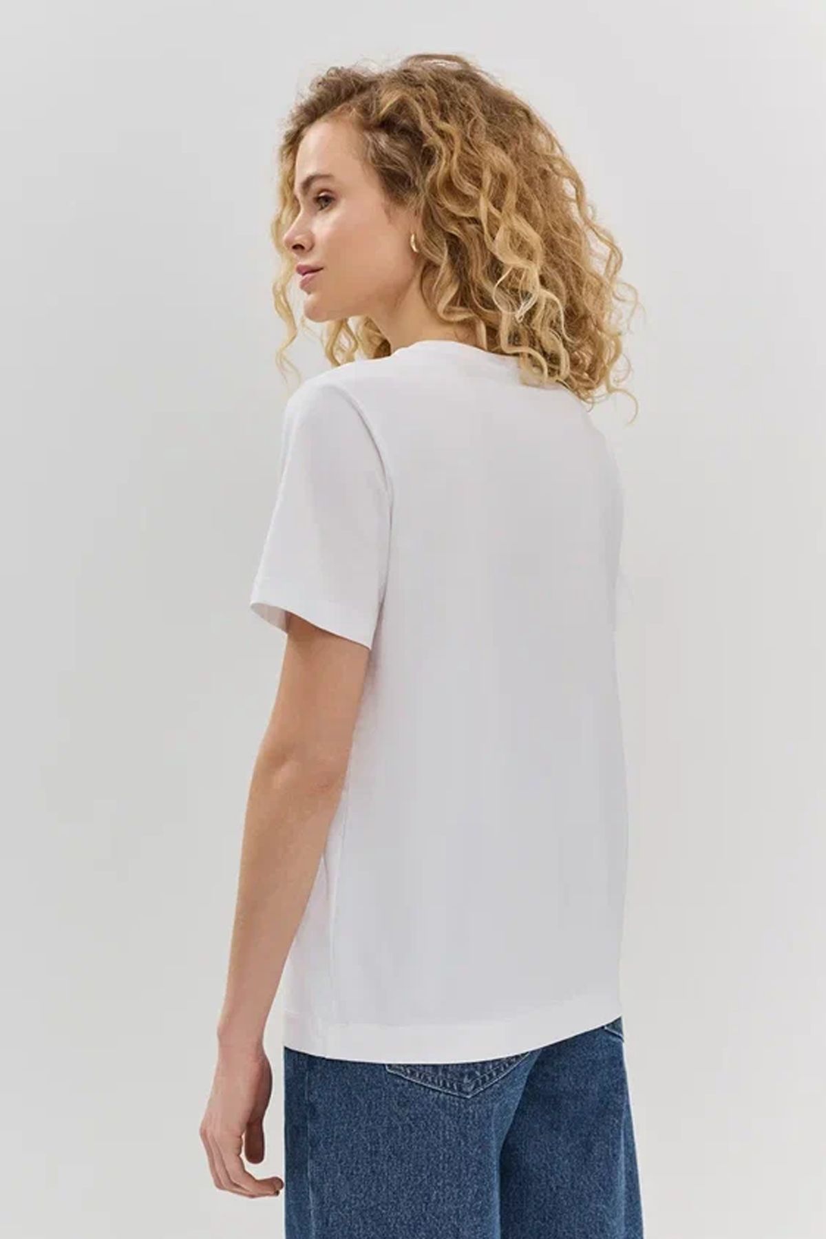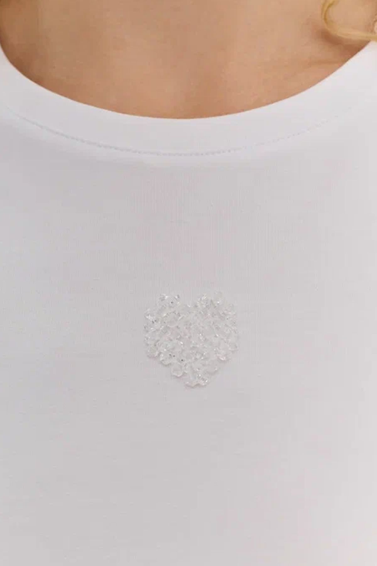Футболка белого цвета с вышивкой крупным бисером, 42р