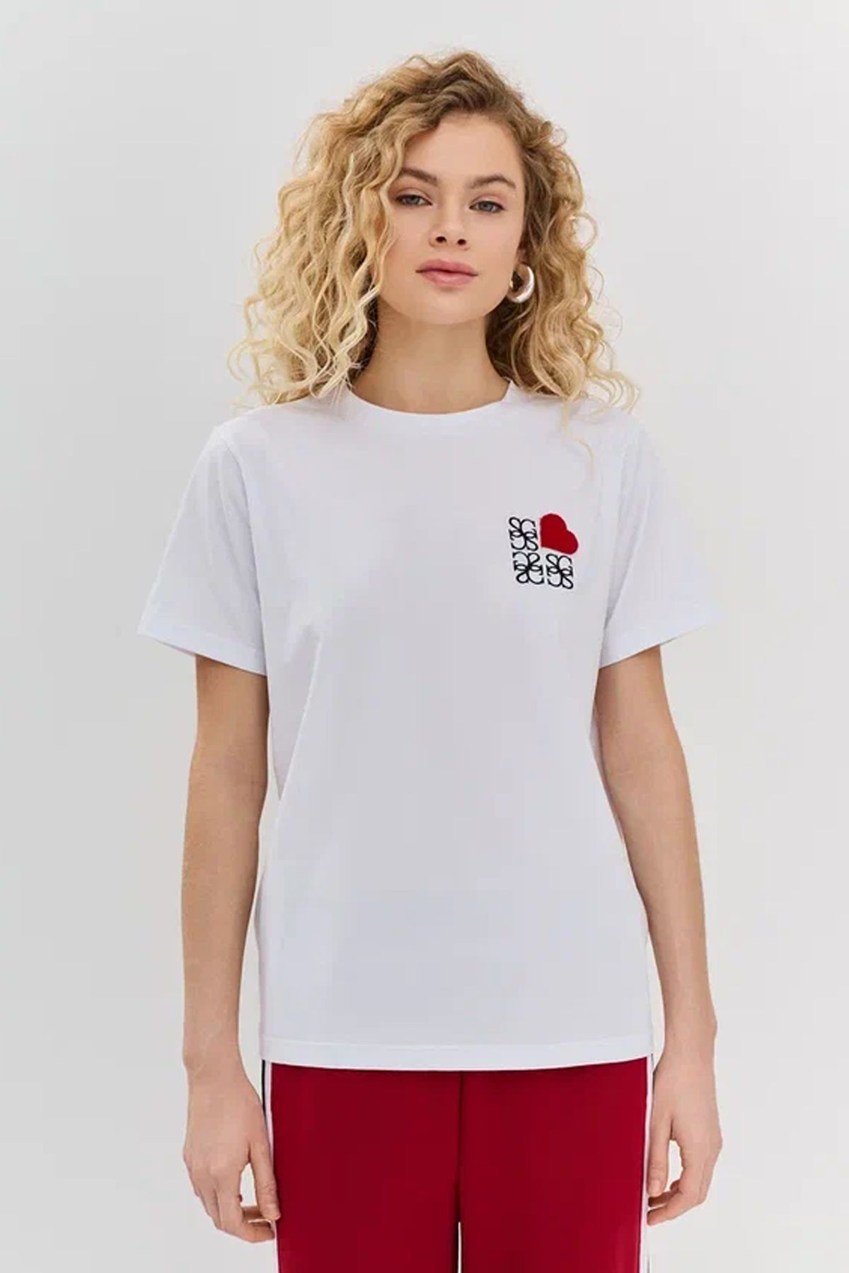Футболка из эластичного хлопка с яркой вышивкой в белом цвете, 48р