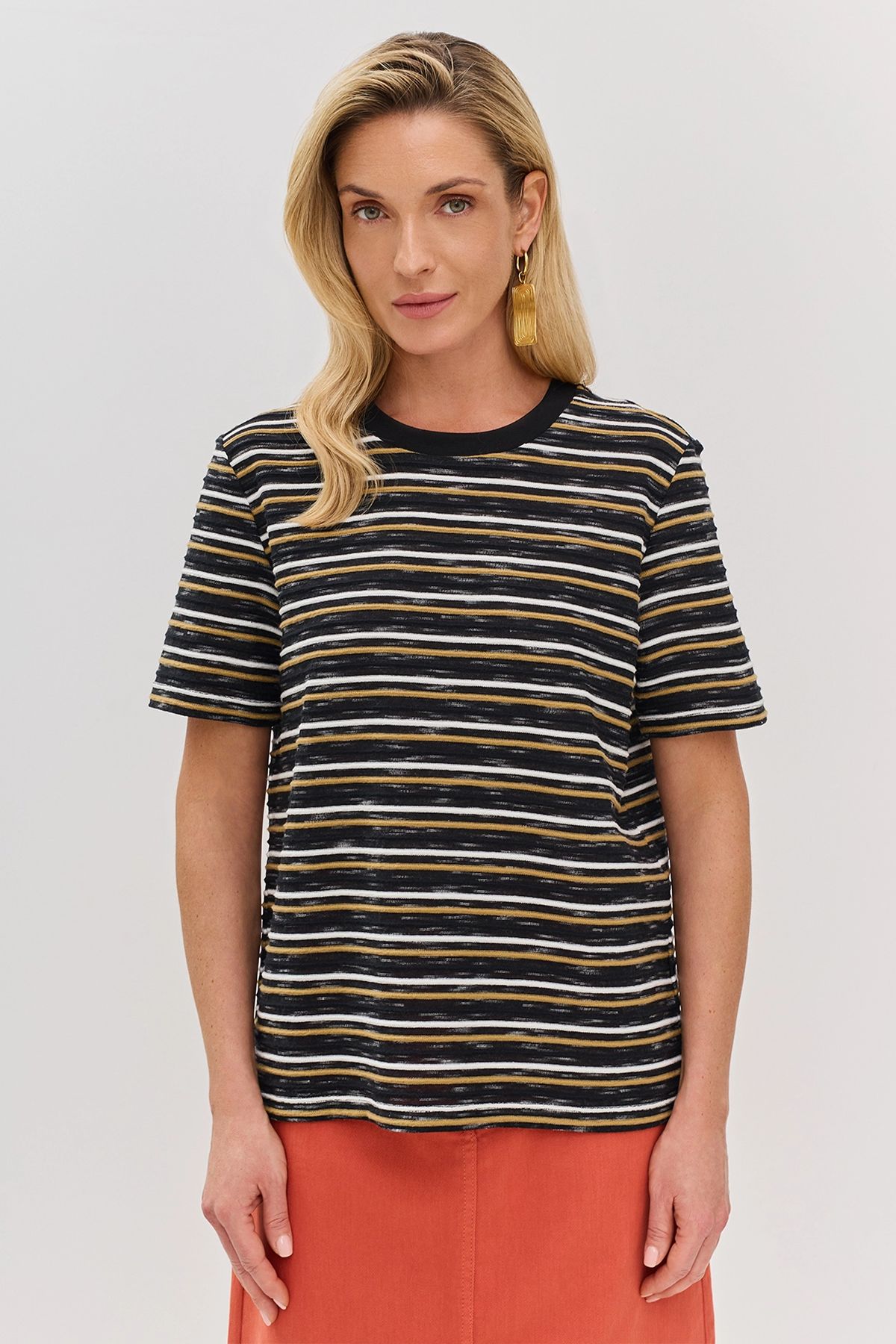 Футболка из фактурного трикотажа в контрастную полоску, 46р