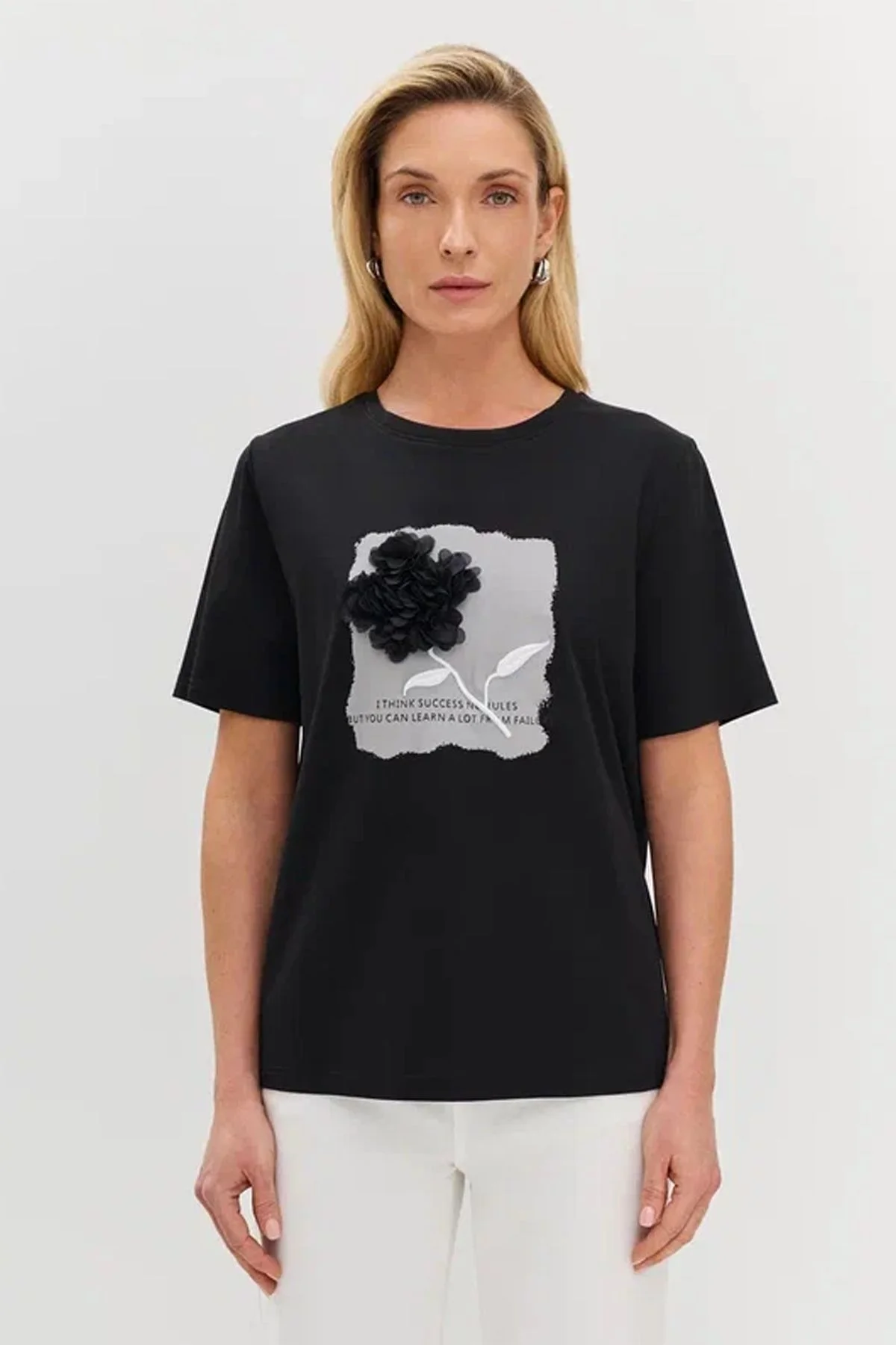 Футболка чёрного цвета с объёмной аппликацией и надписью, 54р