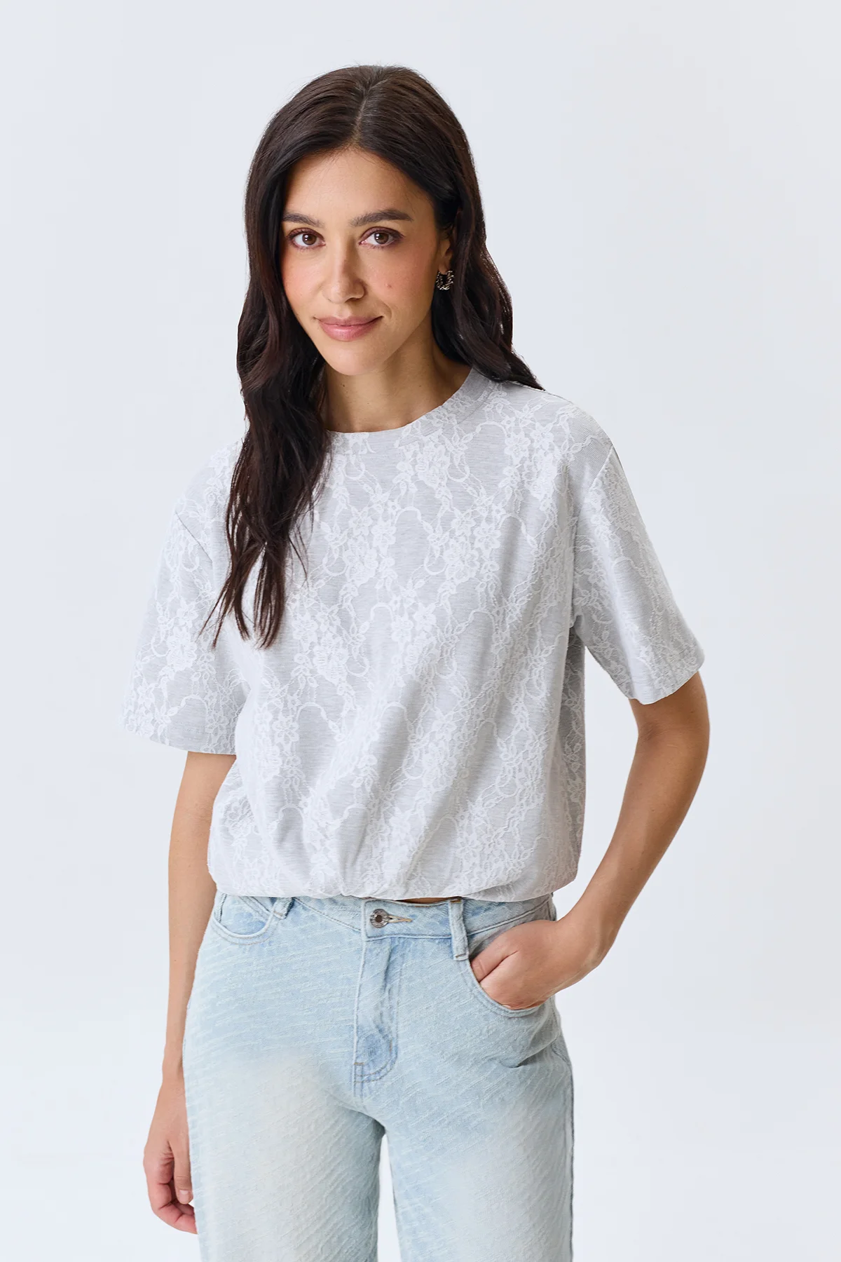 Футболка нарядная с кружевом оверсайз, 40