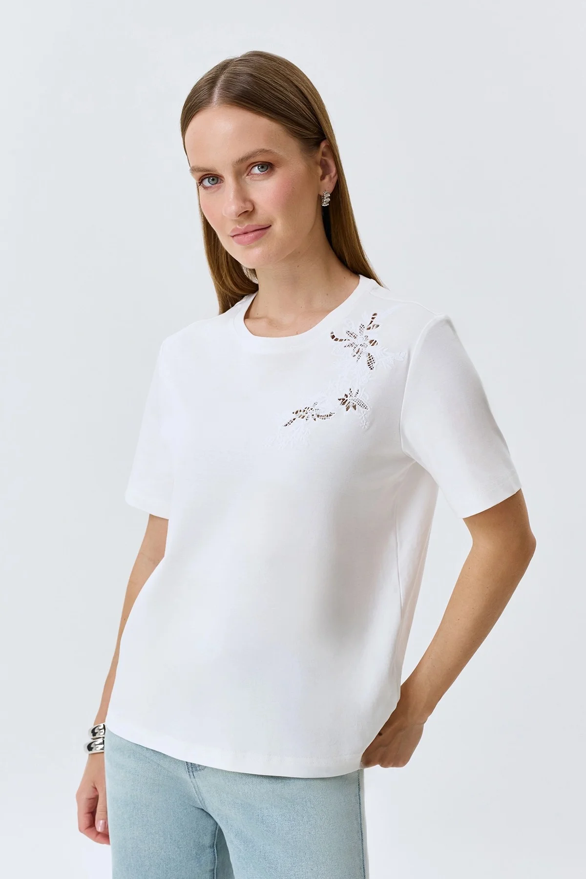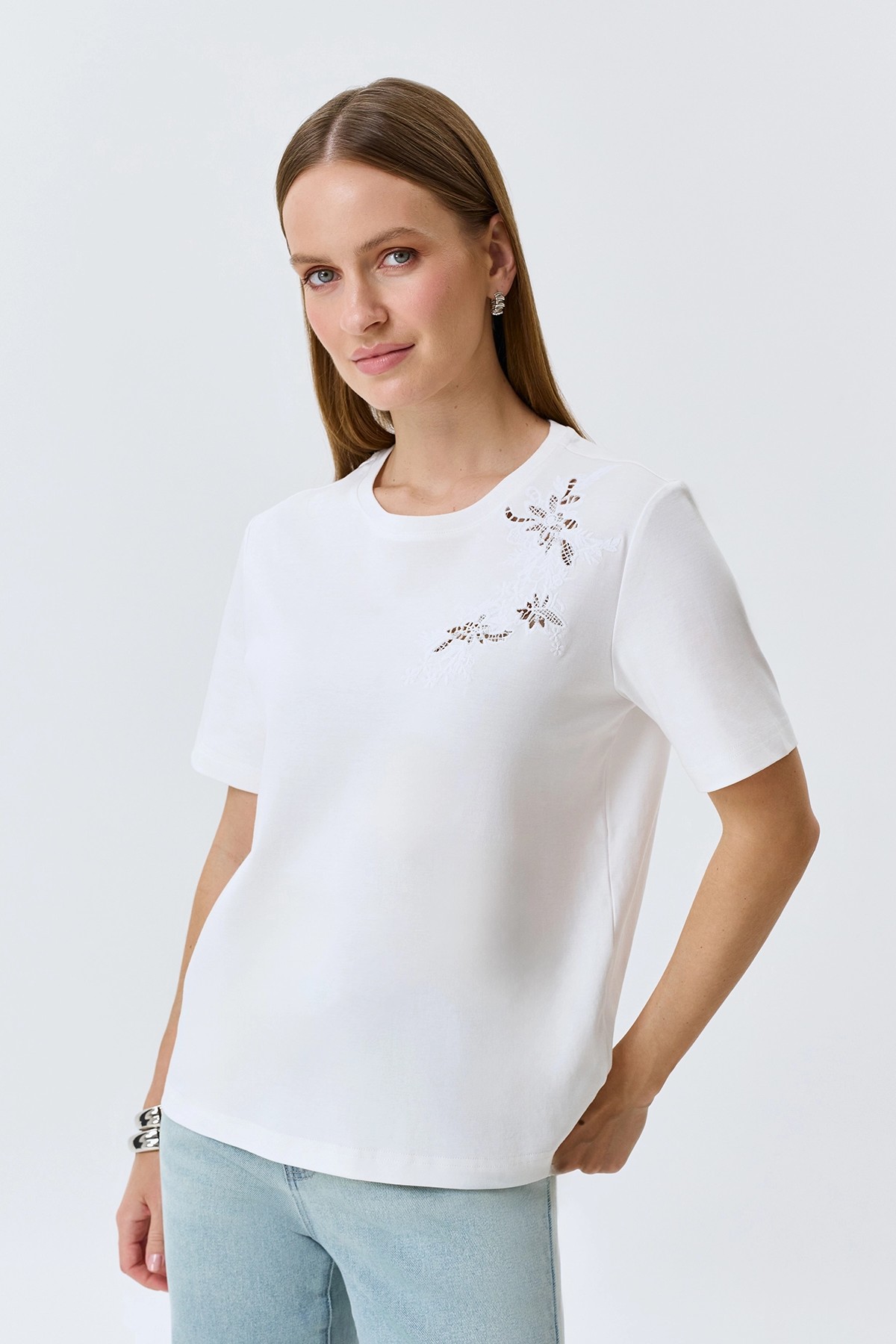 Футболка с ажурным декором, 36