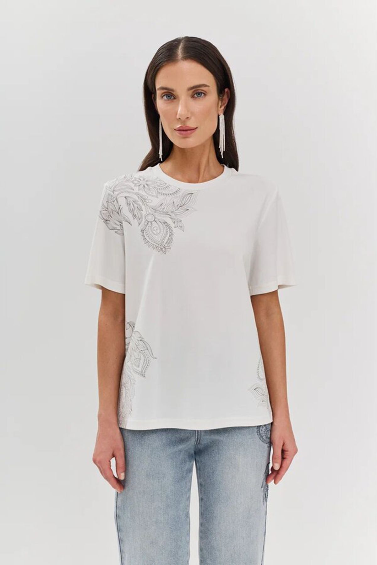 Футболка молочного цвета с флоральным принтом, 44р