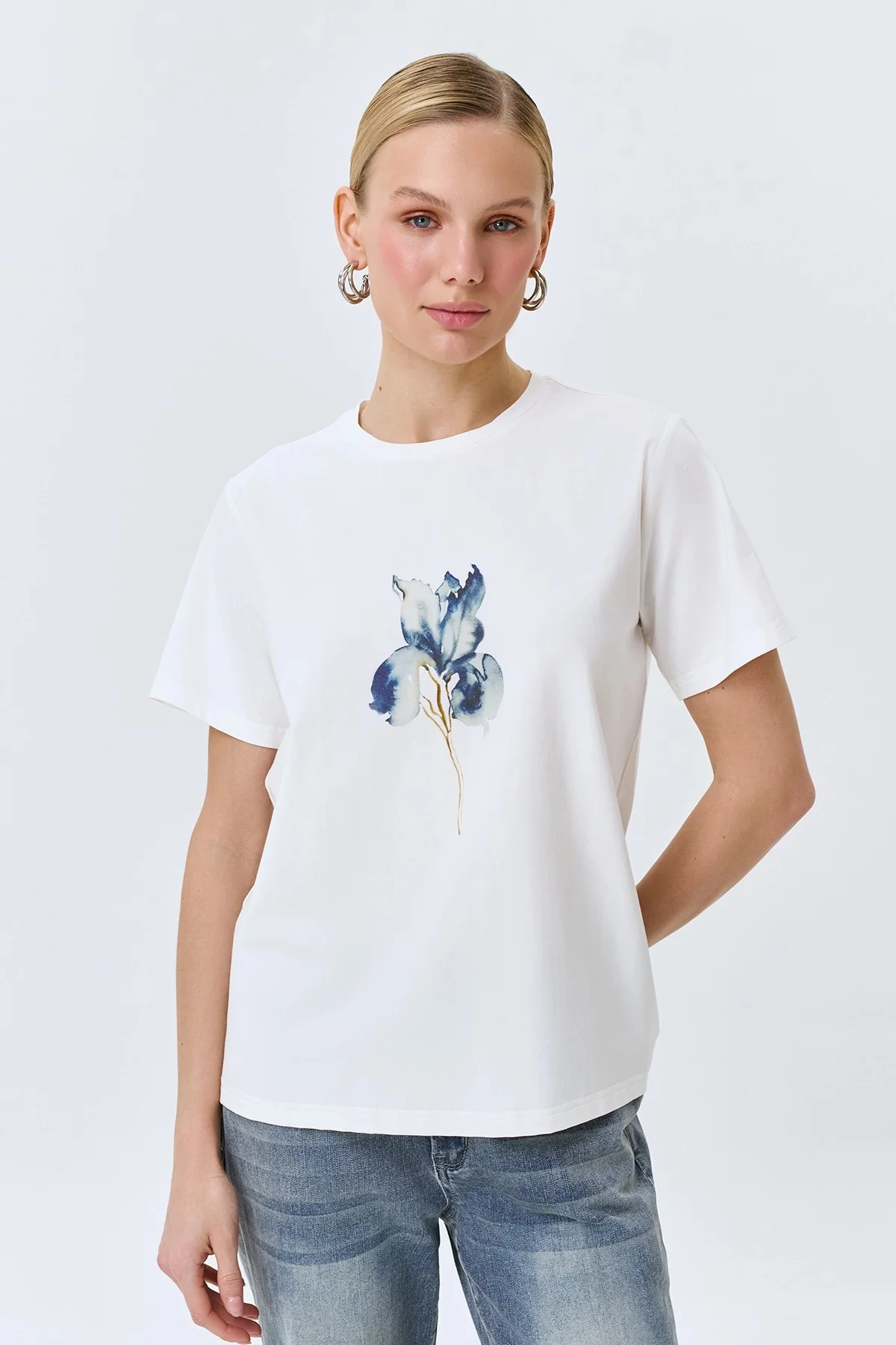 Футболка с флоральным принтом прямого силуэта, 48