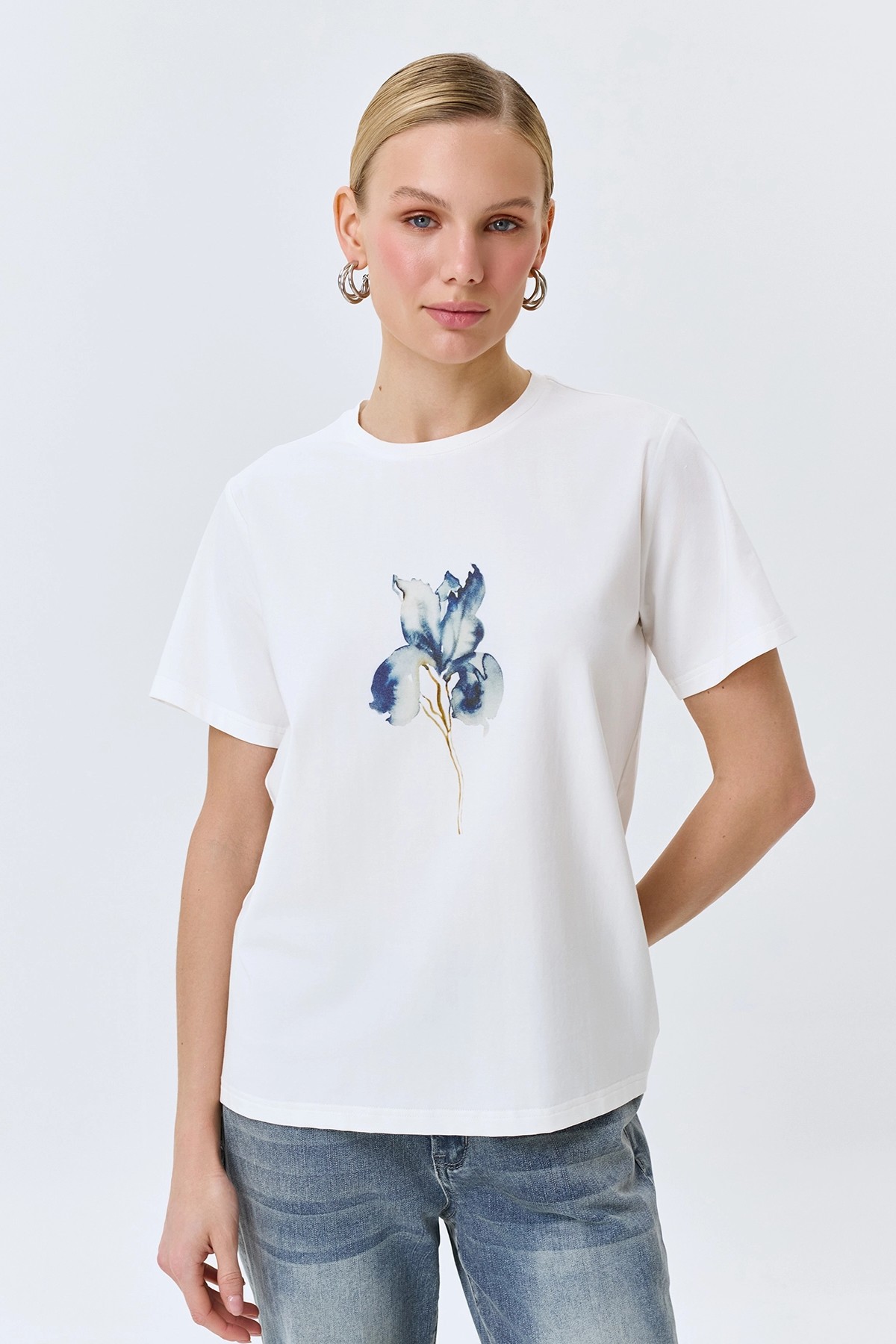 Футболка с флоральным принтом прямого силуэта, 52