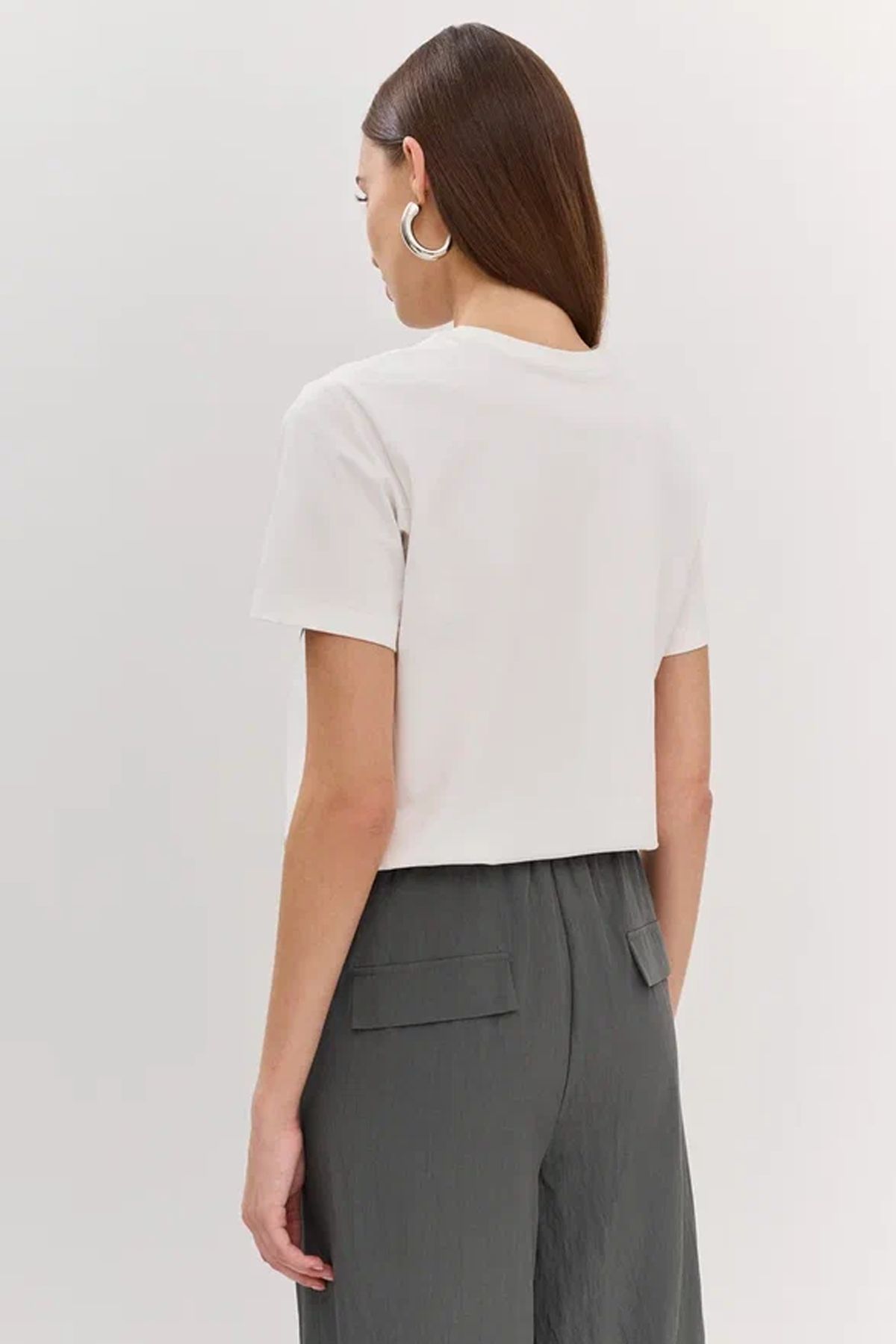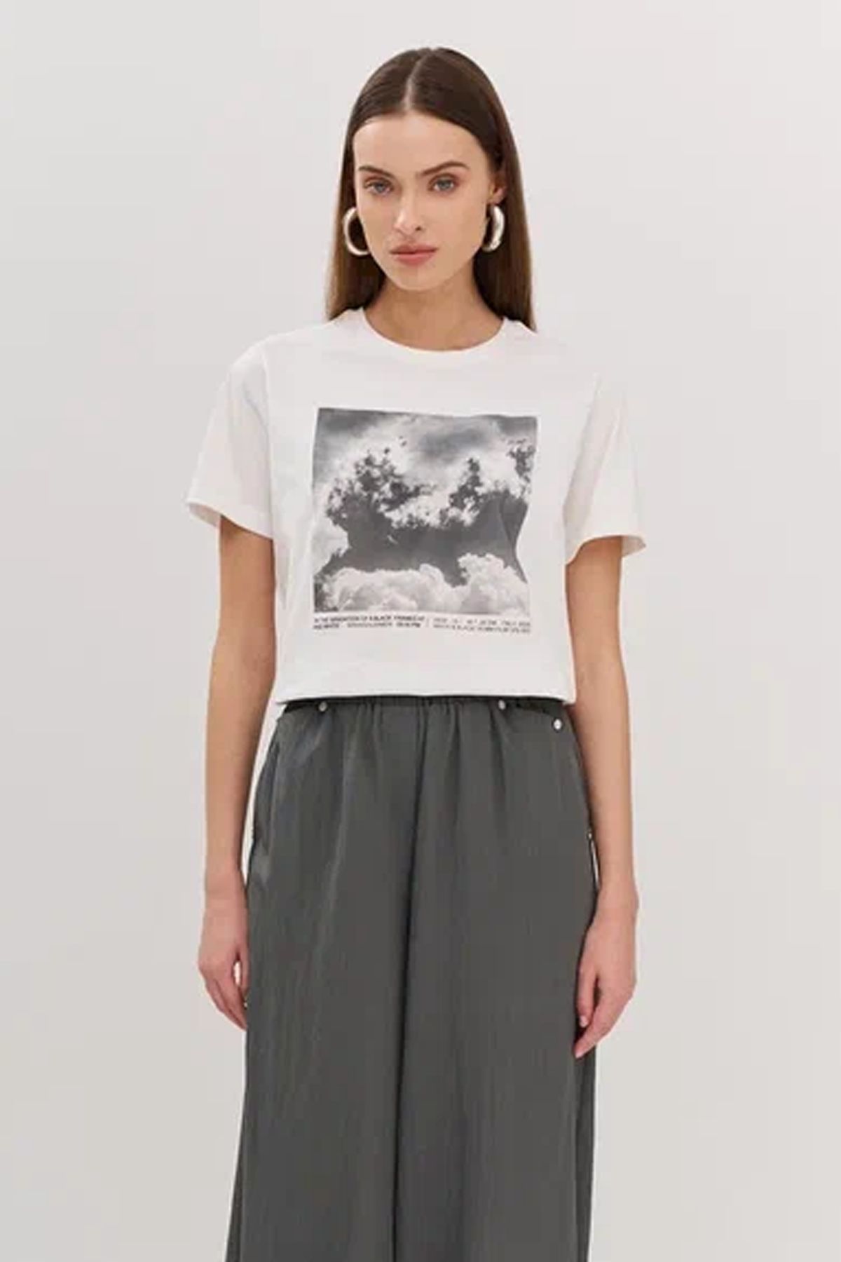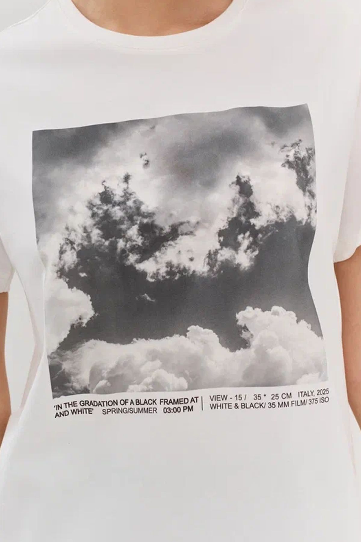 Хлопковая футболка с чёрно-белым фотопринтом. За счёт материала ткань прекрасно обеспечивает терморегуляцию тела. Короткие рукава и круглый вырез горловины комфортно ощущаются в тёплую погоду. Вдохновляющий фотопринт привлекает внимание. Данную модель можно сочетать с различными вариантами низа.