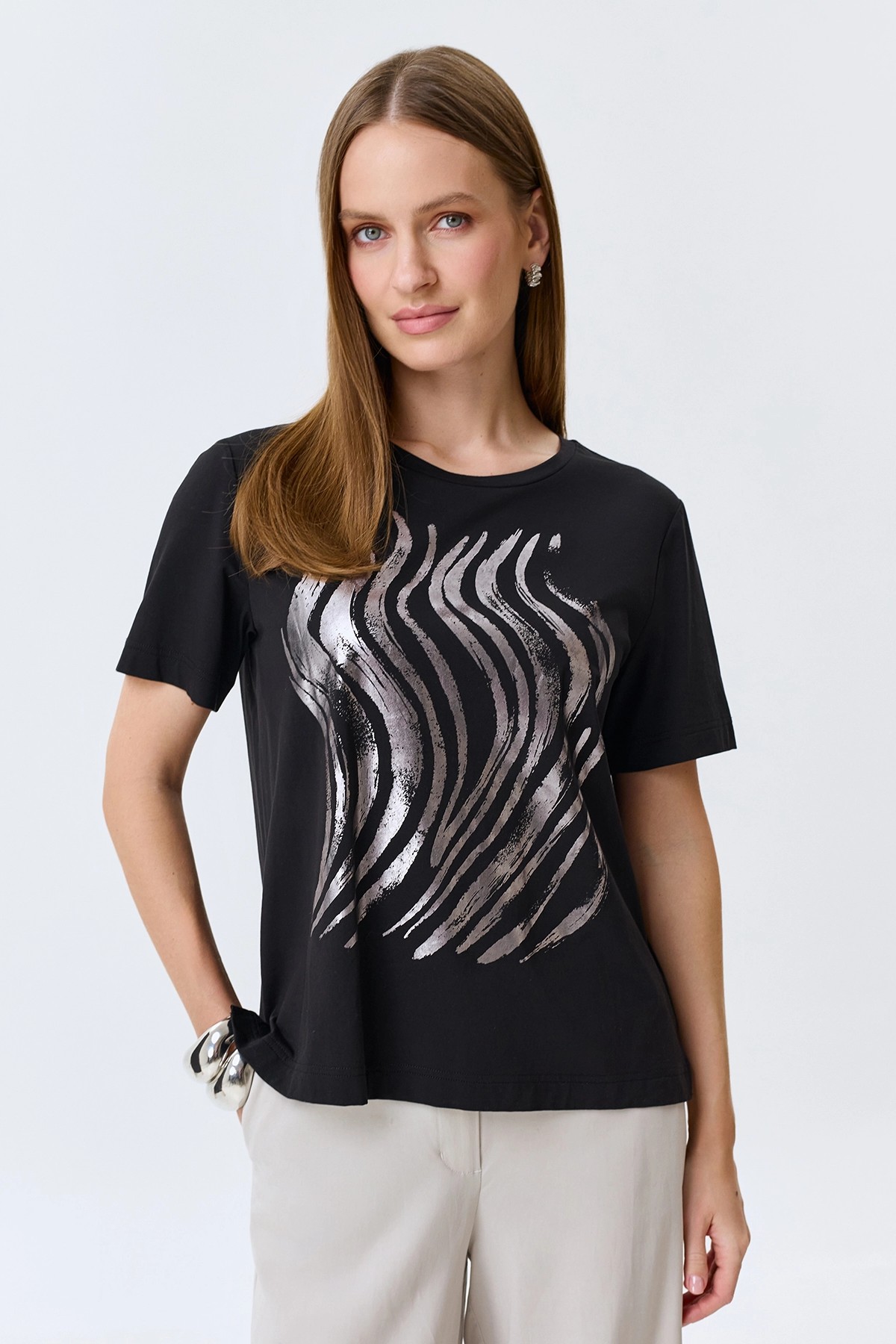 Футболка с металлизированным принтом, 34