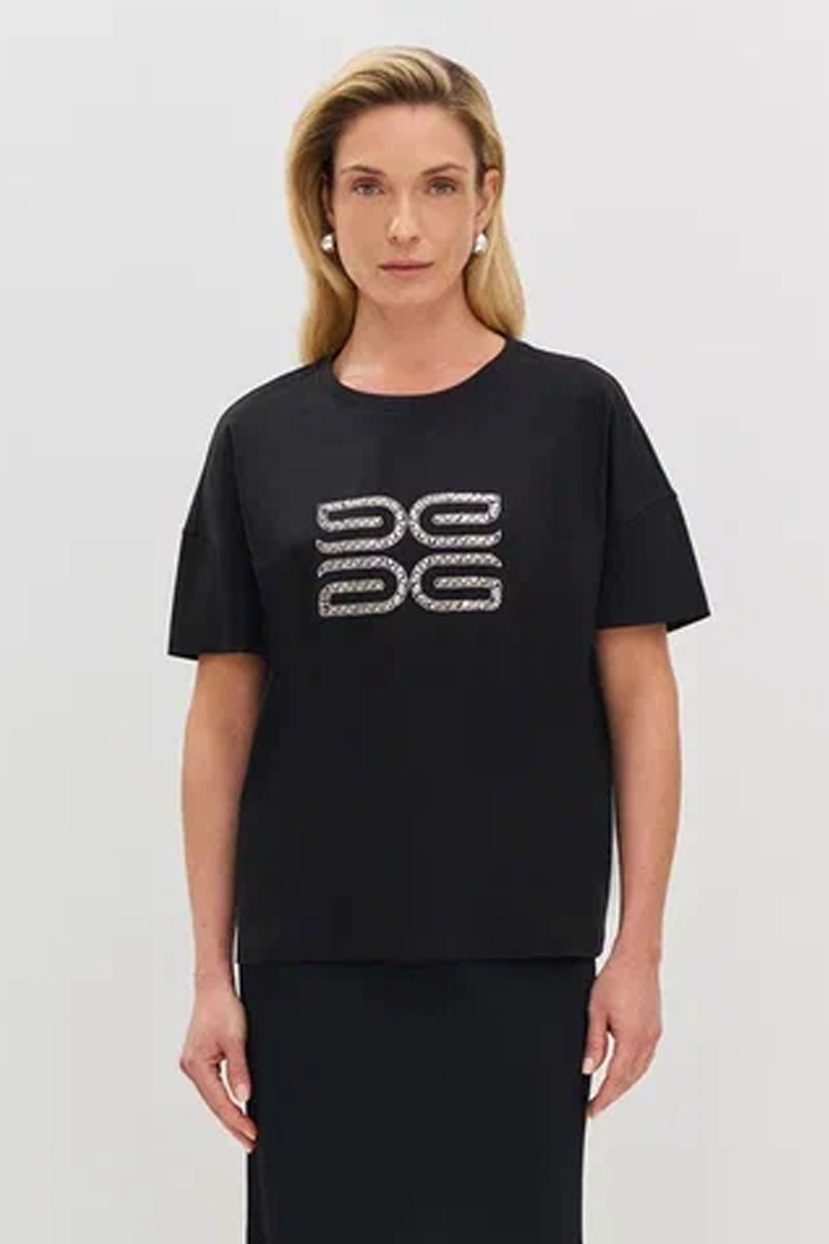 Футболка с объёмной аппликацией из страз, 52р