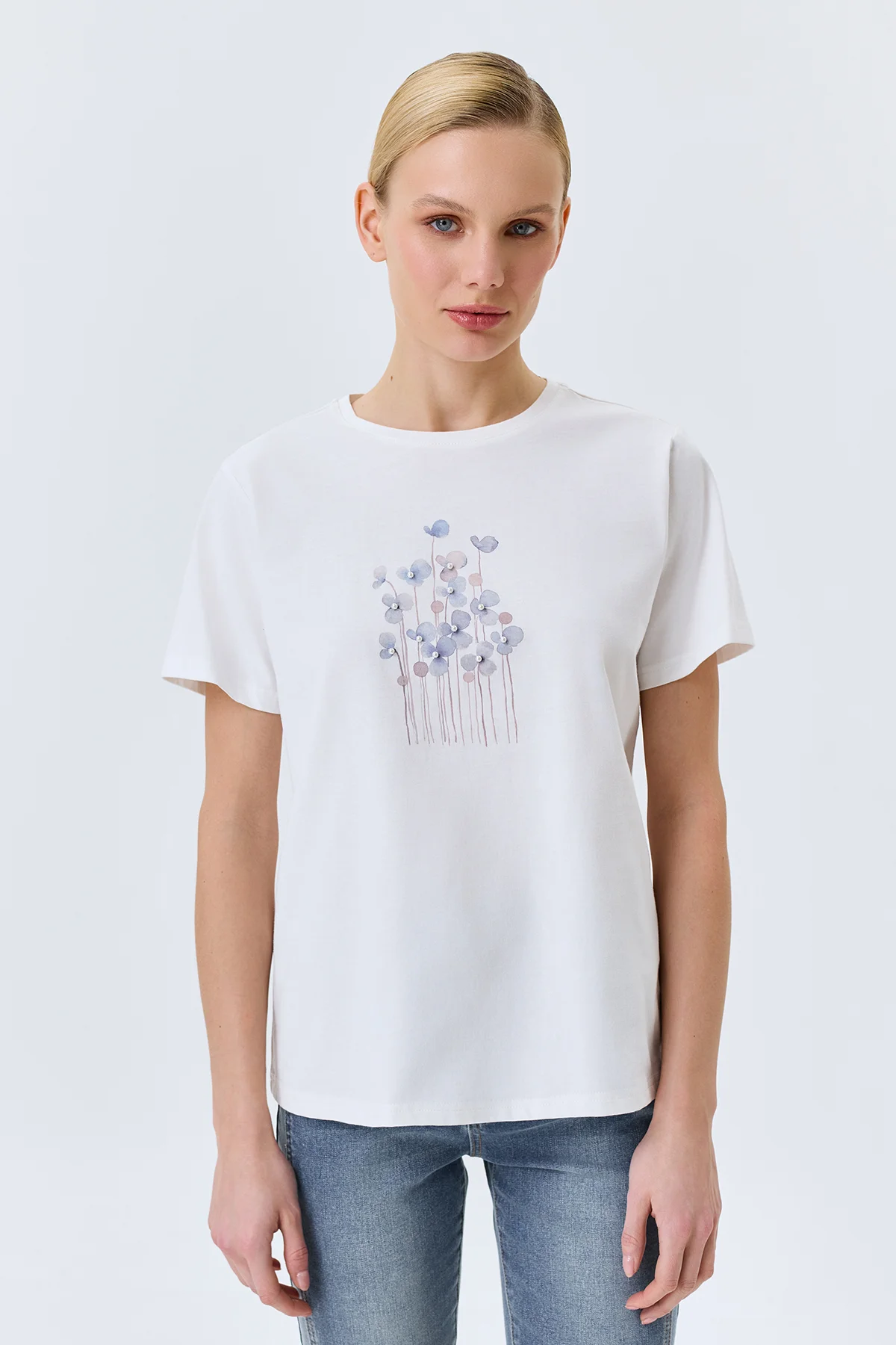 Футболка с принтом и жемчужинами, 44