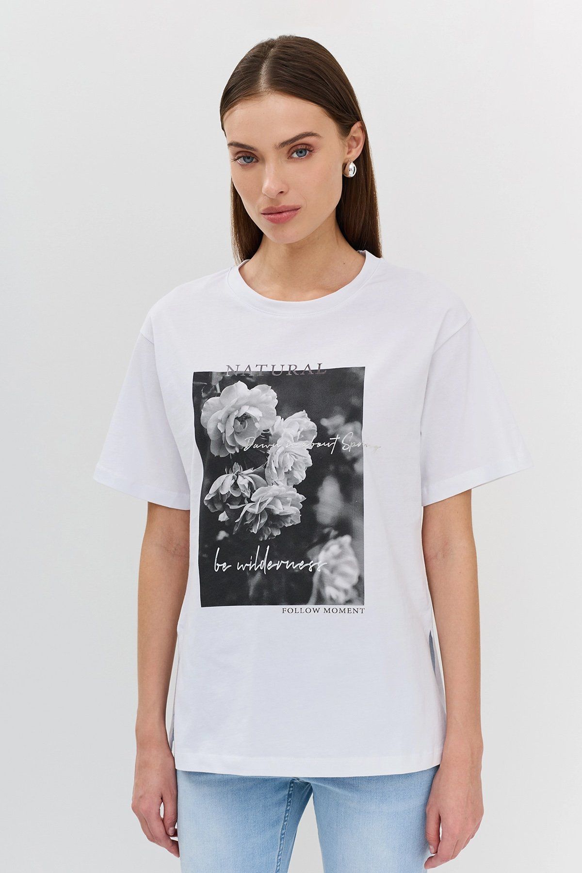 Хлопчатая футболка с чёрно-белым принтом, 50р