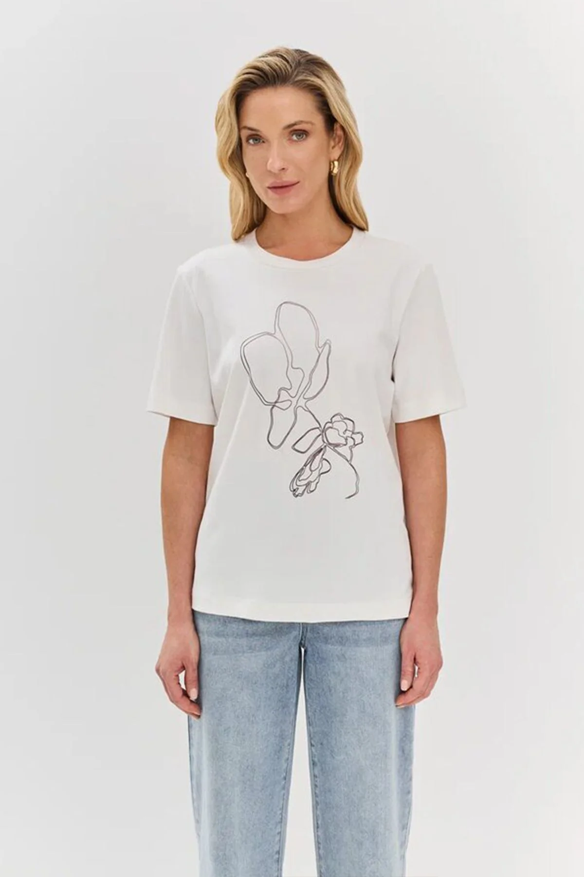 Хлопковая футболка с принтом в технике "one line", 52р