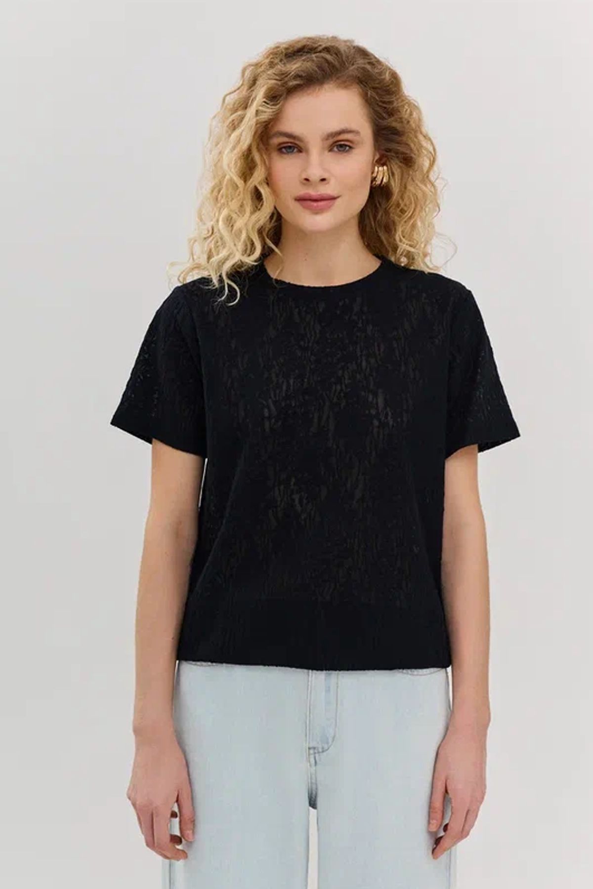 Однотоная футболка черного цвета из фактурной ткани, 48р