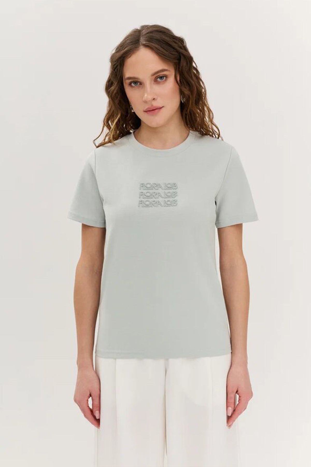Однотонная футболка серо-голубого цвета с объёмным декором на полочке. Изготовленная из качественного дышащего материала, она обеспечивает комфорт и свободу движений в течение всего дня. Короткий рукав и круглый вырез горловины комфортно ощущаются в теплую погоду. Данную футболку легко комбинировать с джинсами, шортами или юбками.