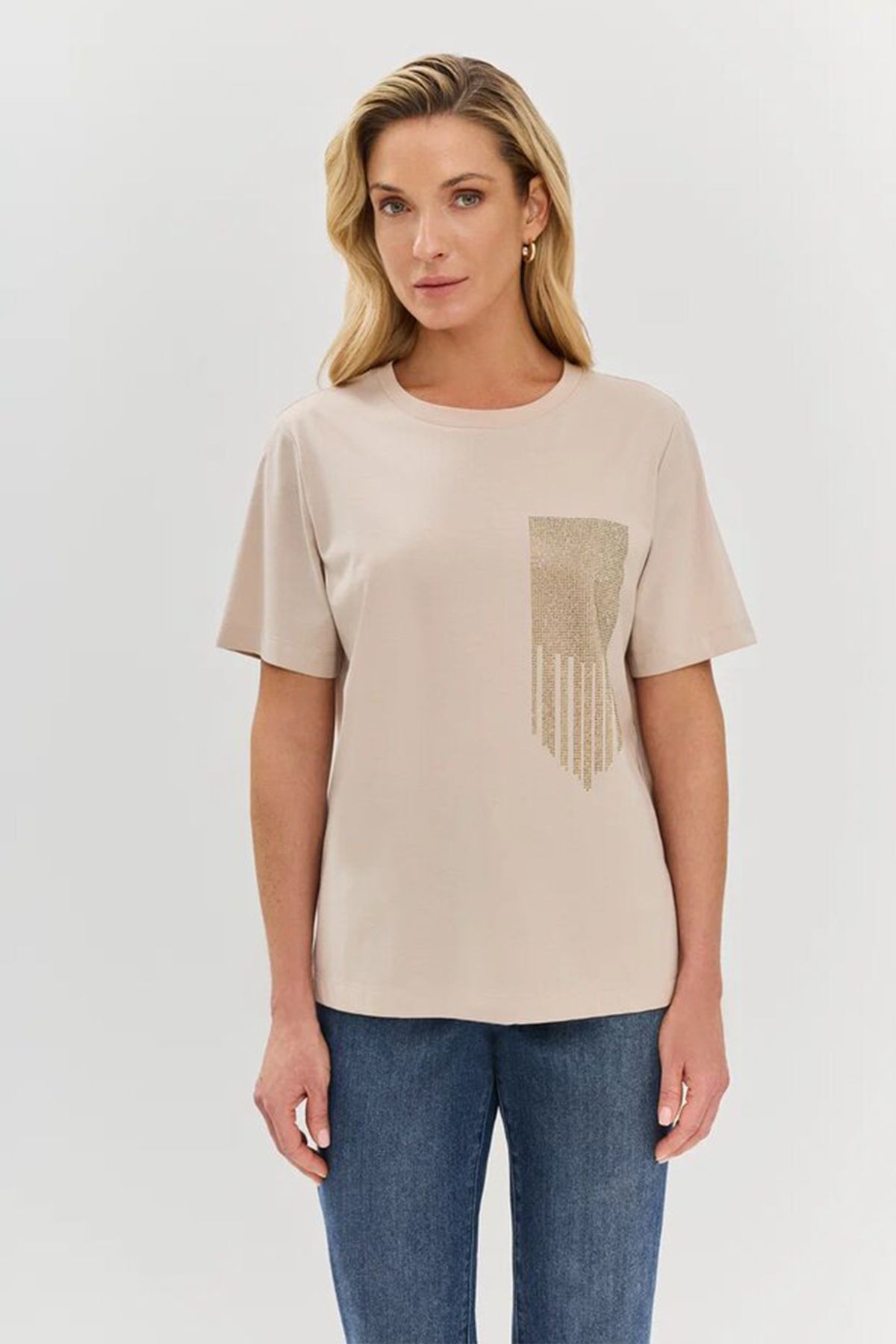 Стильная футболка с принтом из страз, 44р