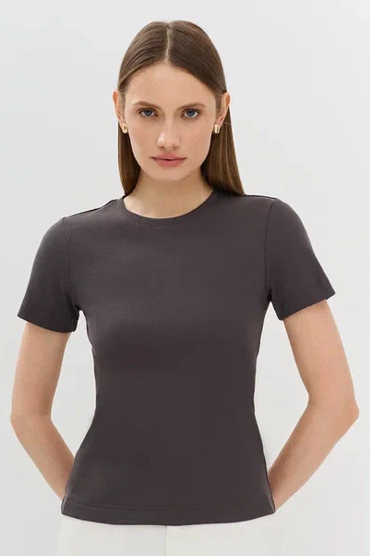 Укороченная футболка в рубчик приталенного силуэта в графитовом цвете, 50р