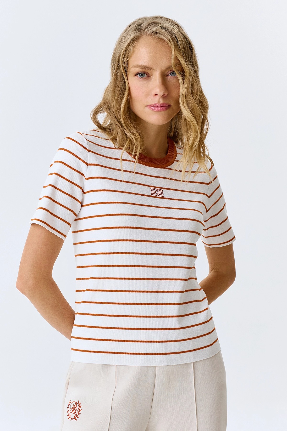Вязаная футболка в полоску, 46