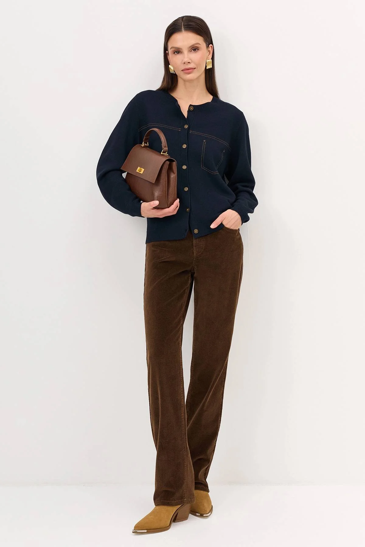 Кардиган с контрастными строчками, 36