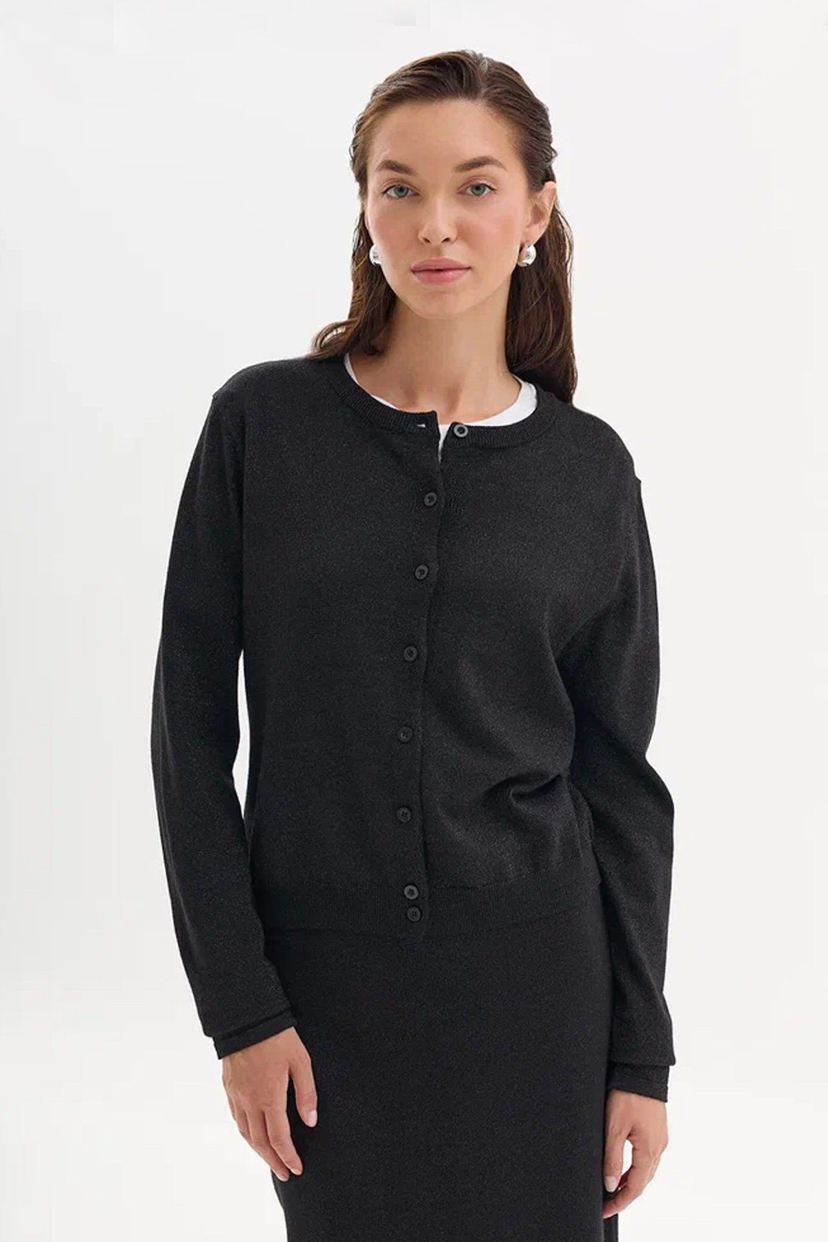 Укороченный трикотажный кардиган с люрексом в черном цвете, 44р