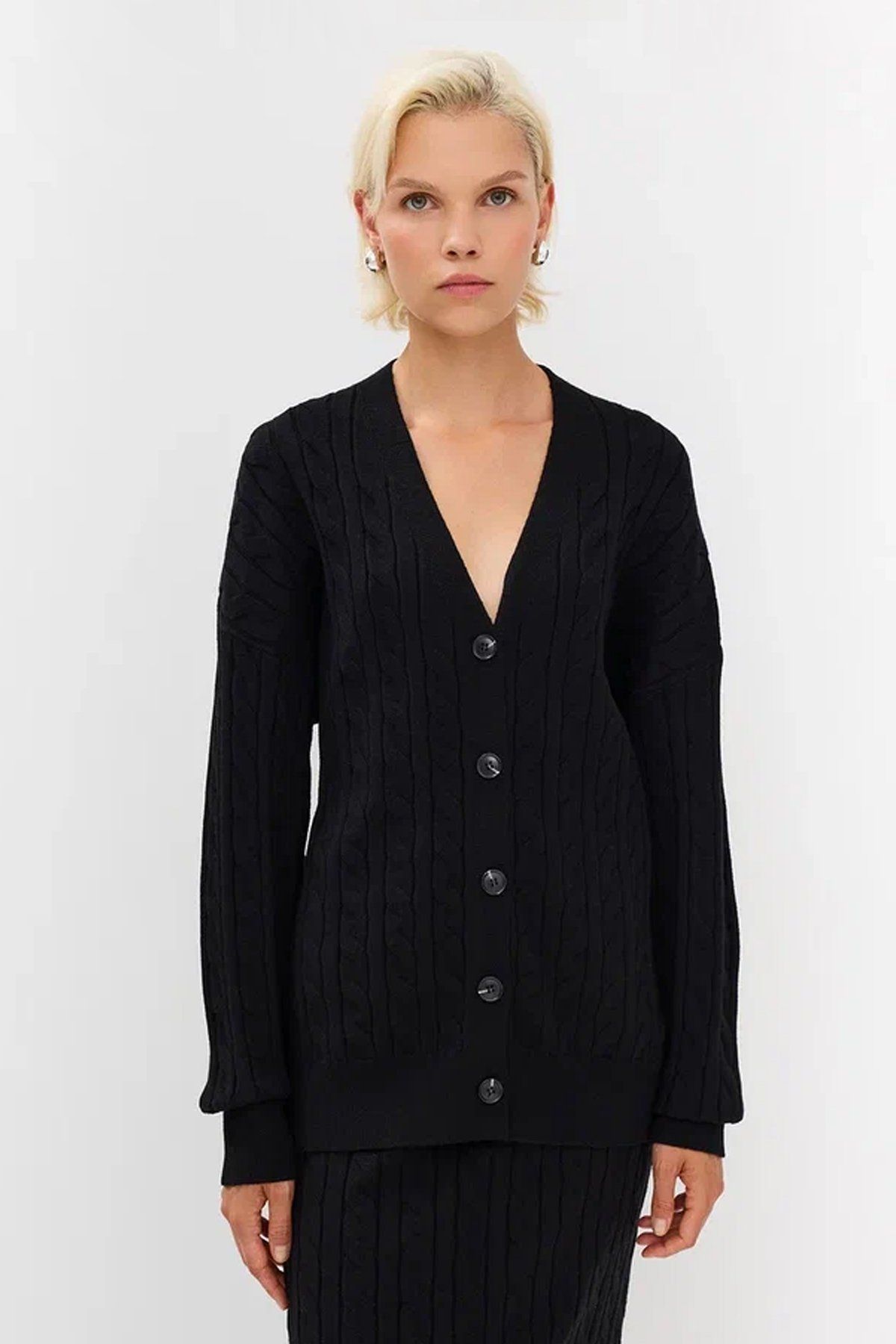 Трикотажный кардиган с фактурной вязкой "жгут", 44р