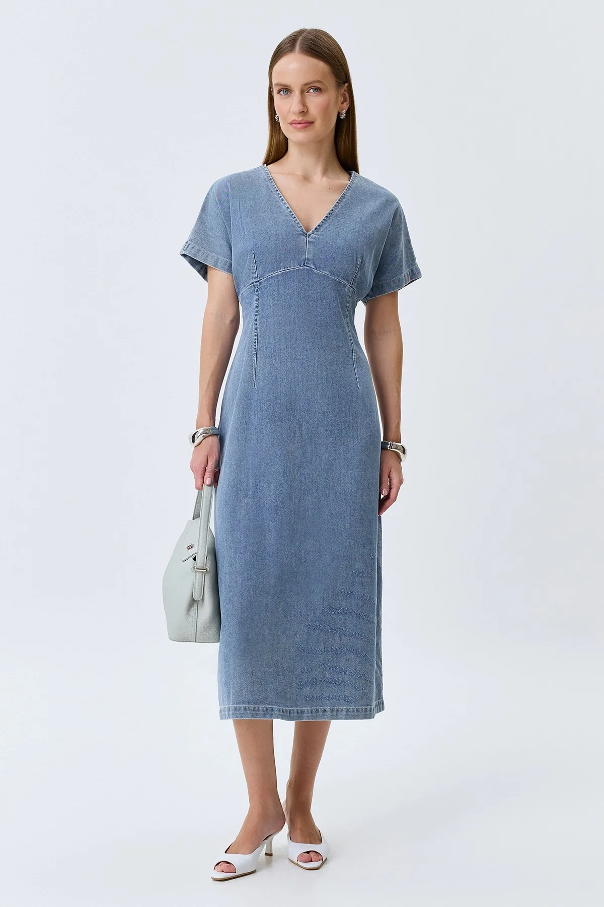 Джинсовое платье с V-образным вырезом, 40