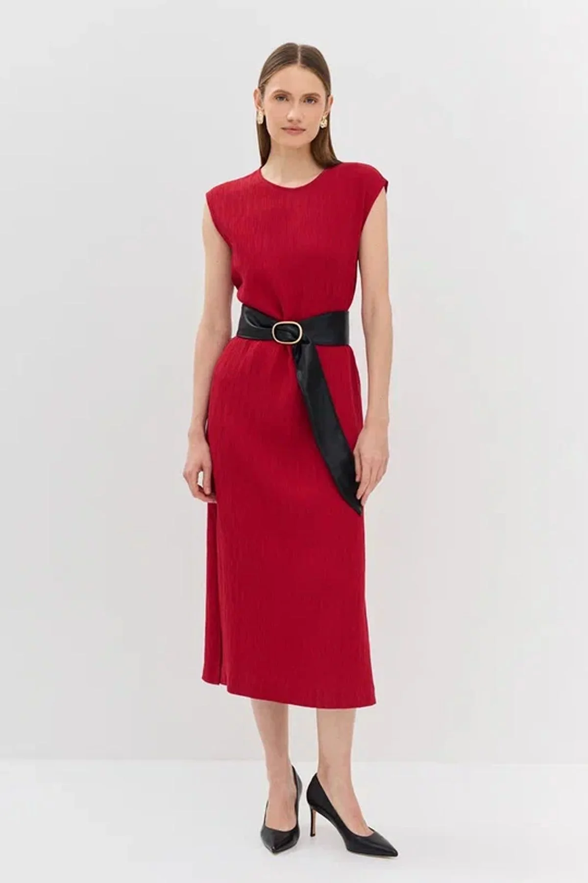 Элегантное платье миди в темно-красном цвете, 42р