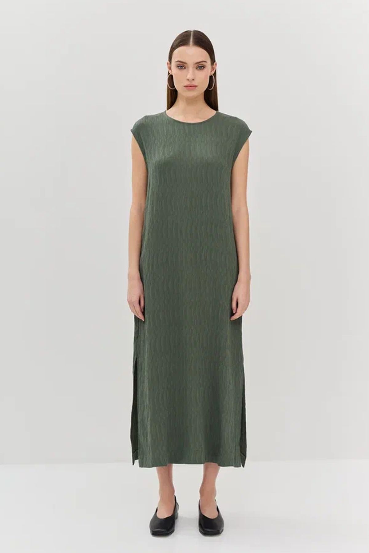 Элегантное платье миди в серо-зеленом цвете, 52р