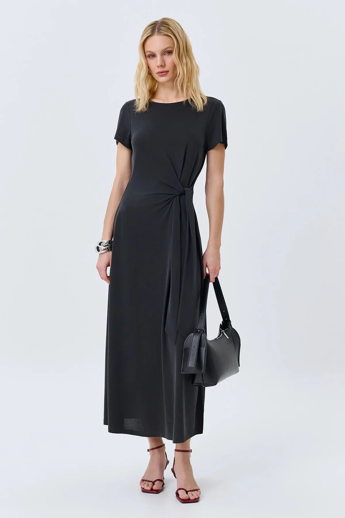 Элегантное платье с акцентной драпировкой, 46