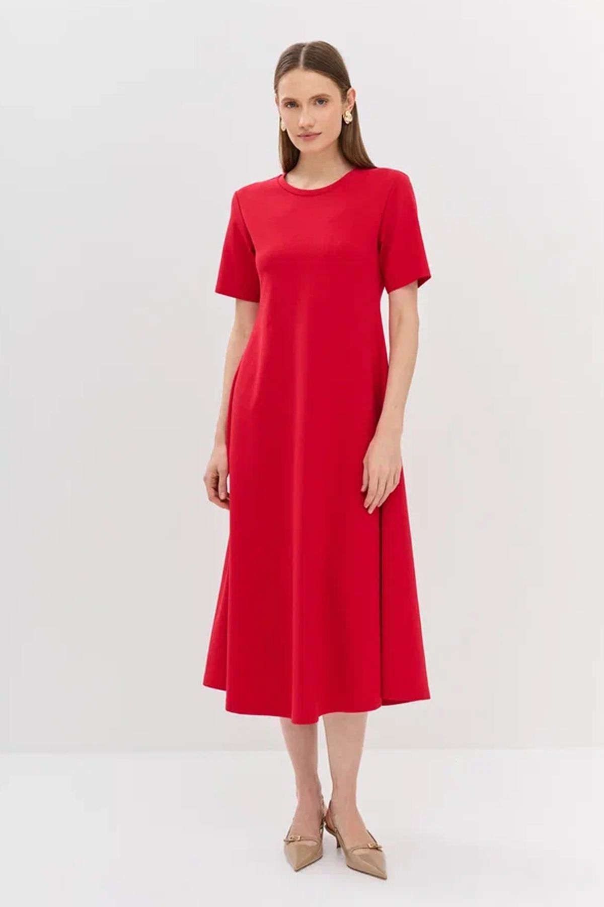 Элегантное платье с коротким рукавом в красном цвете, 44р