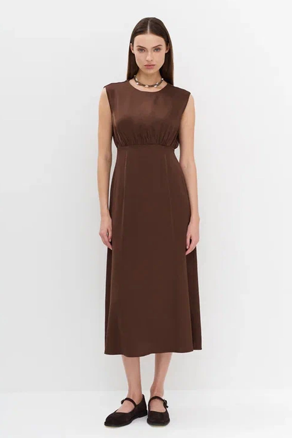 Элегантное платье со сборкой по талии в коричневом цвете, 50р