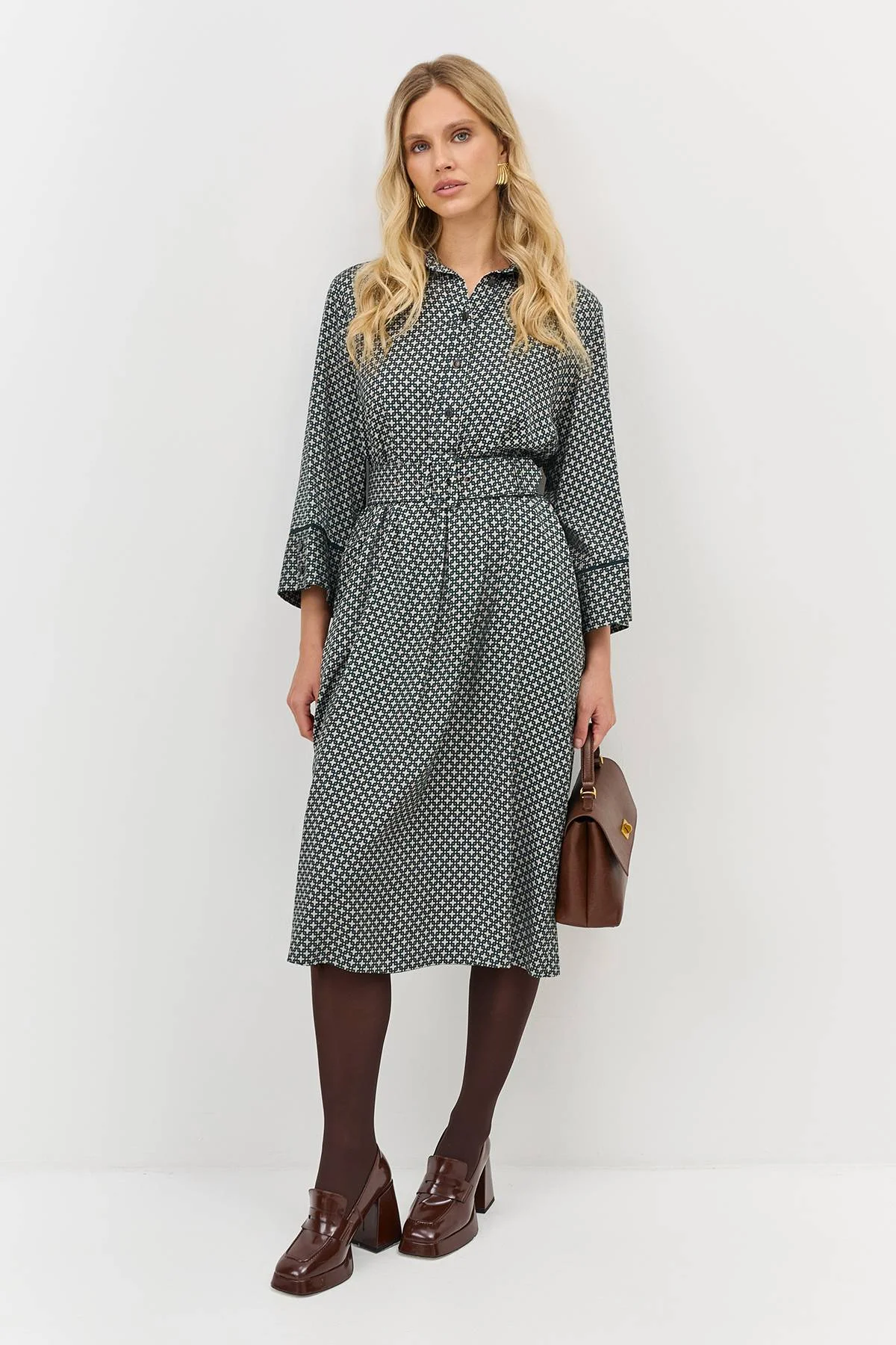 Лимитированная серия платье-рубашка с геометрическим принтом и палантином, 34