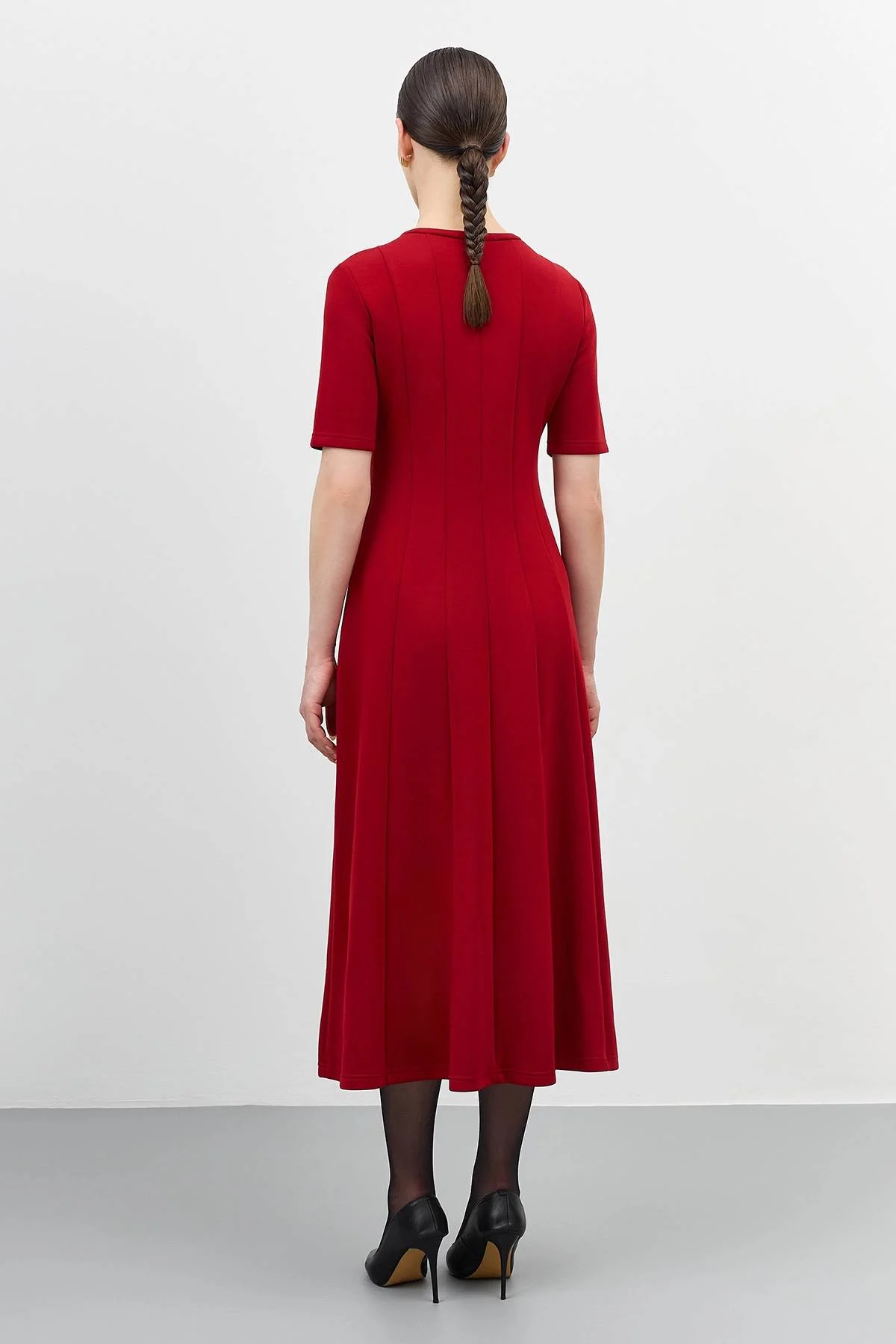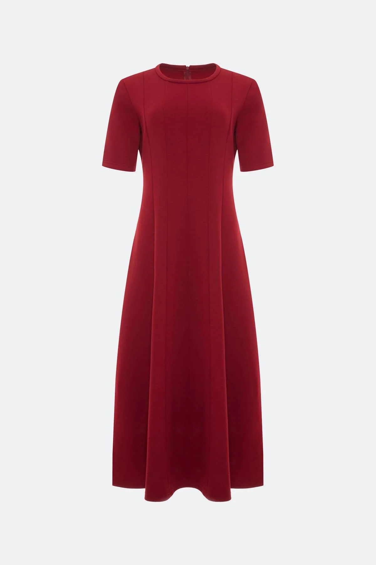 Трикотажное платье из смесовой вискозы. Вертикальные рельефы задают приталенный силуэт. Длина макси. Круглый вырез. Короткий рукав.
