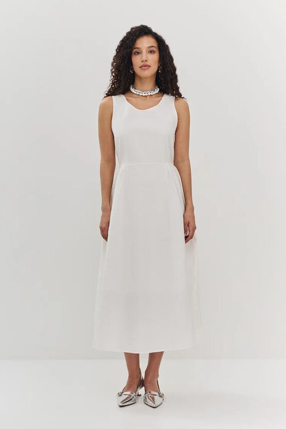 Лёгкое платье миди с боковыми карманами в молочном цвете, 40р