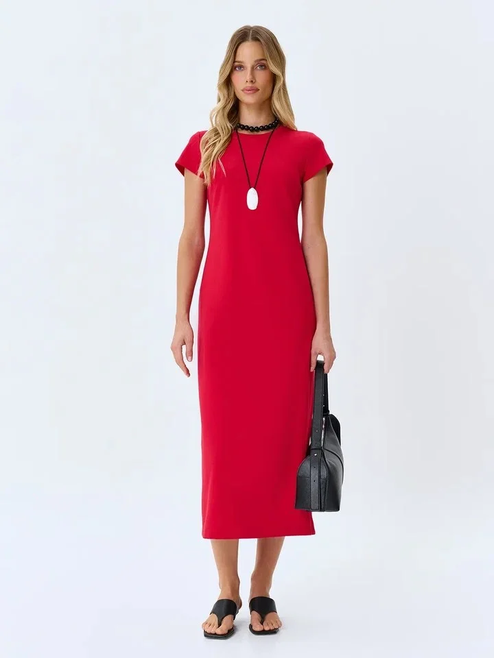 Изготовленное из мягкого и приятного к телу трикотажа, это платье станет незаменимым элементом вашего весенне-летнего гардероба.