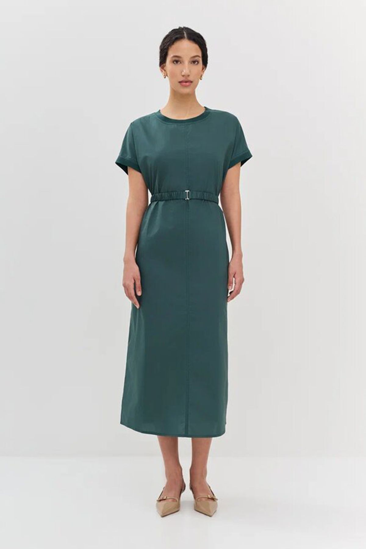 Платье из хлопка с поясом в графитовом цвете, 52р