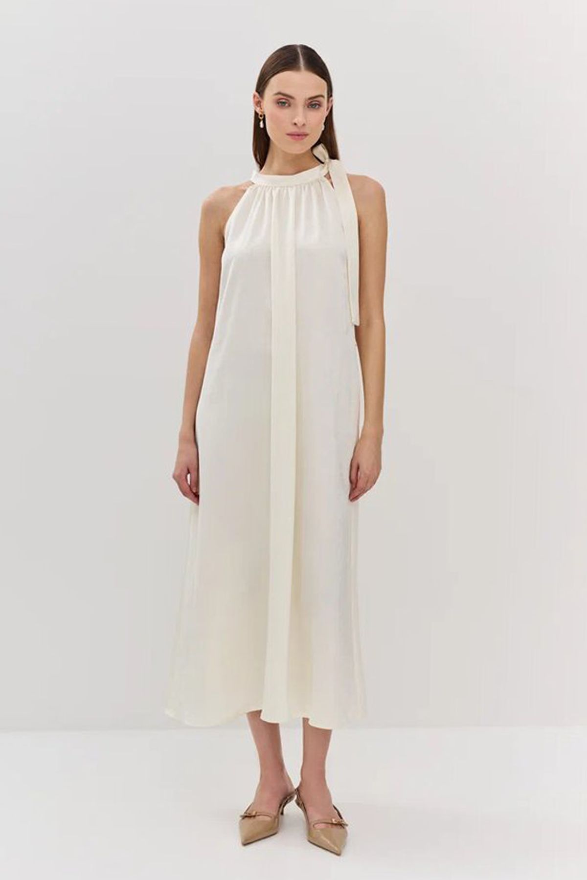Платье миди с боковыми карманами в молочном цвете, 48р