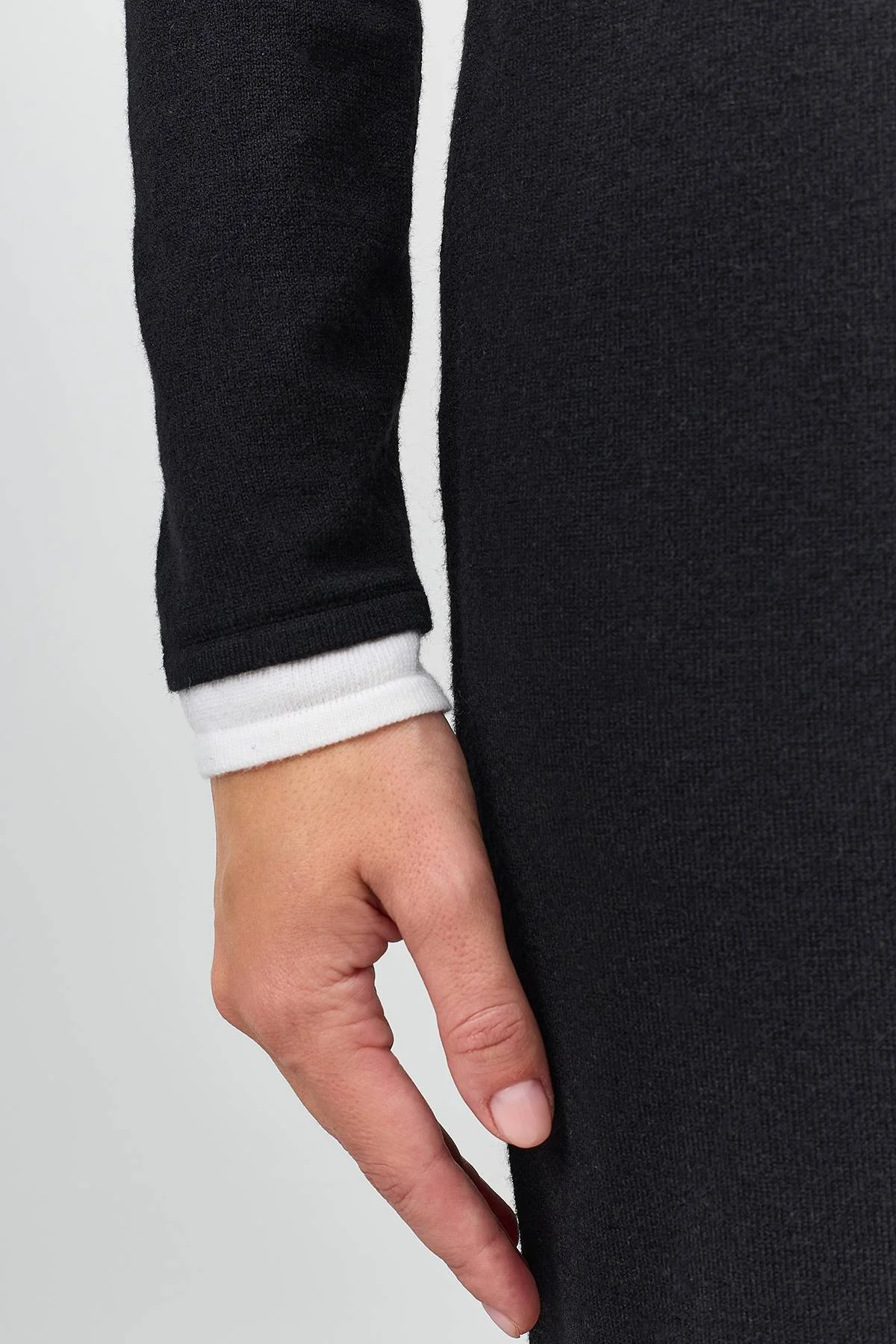 Вязаное платье-миди с контрастными деталями по горловине и рукавам. Прямой силуэт. Круглый вырез. В составе шерсть.