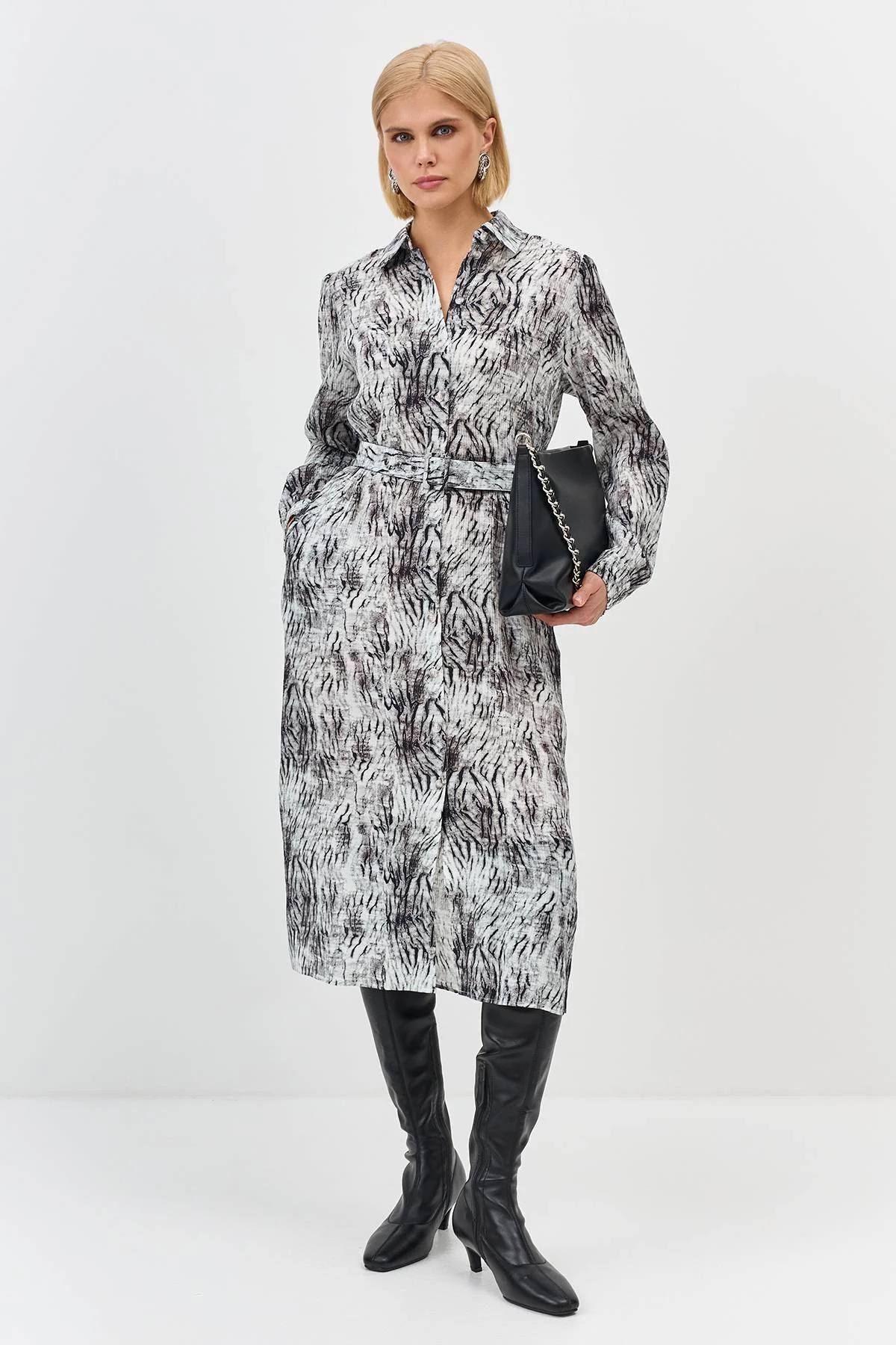 Платье-рубашка из вискозы с принтом, 40