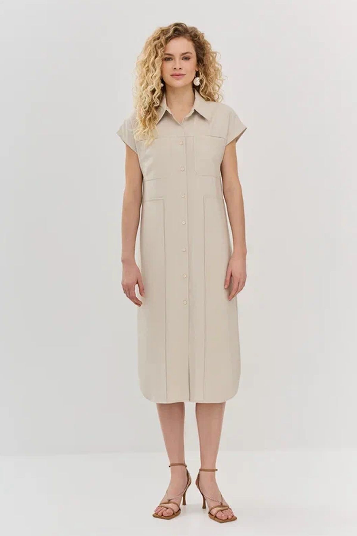 Платье-рубашка с закругленным низом, 46р