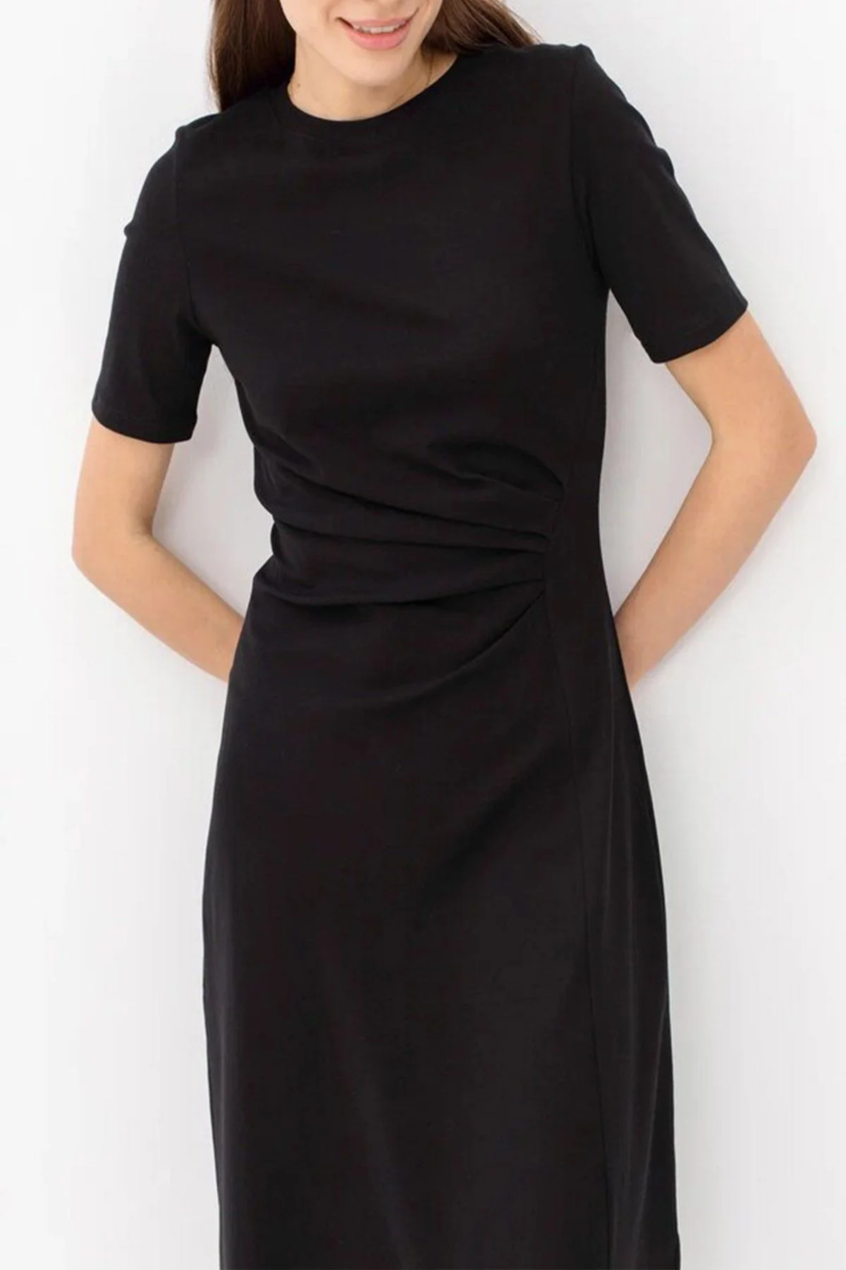 Платье с драпировкой на талии, капсула Summer city. Это платье идеально подойдет для летних прогулок по городу. Материал изделия: хлопок и спандекс, обеспечивающие комфорт и эластичность. Круглый вырез горловины. Приталенный силуэт подчеркивает фигуру.