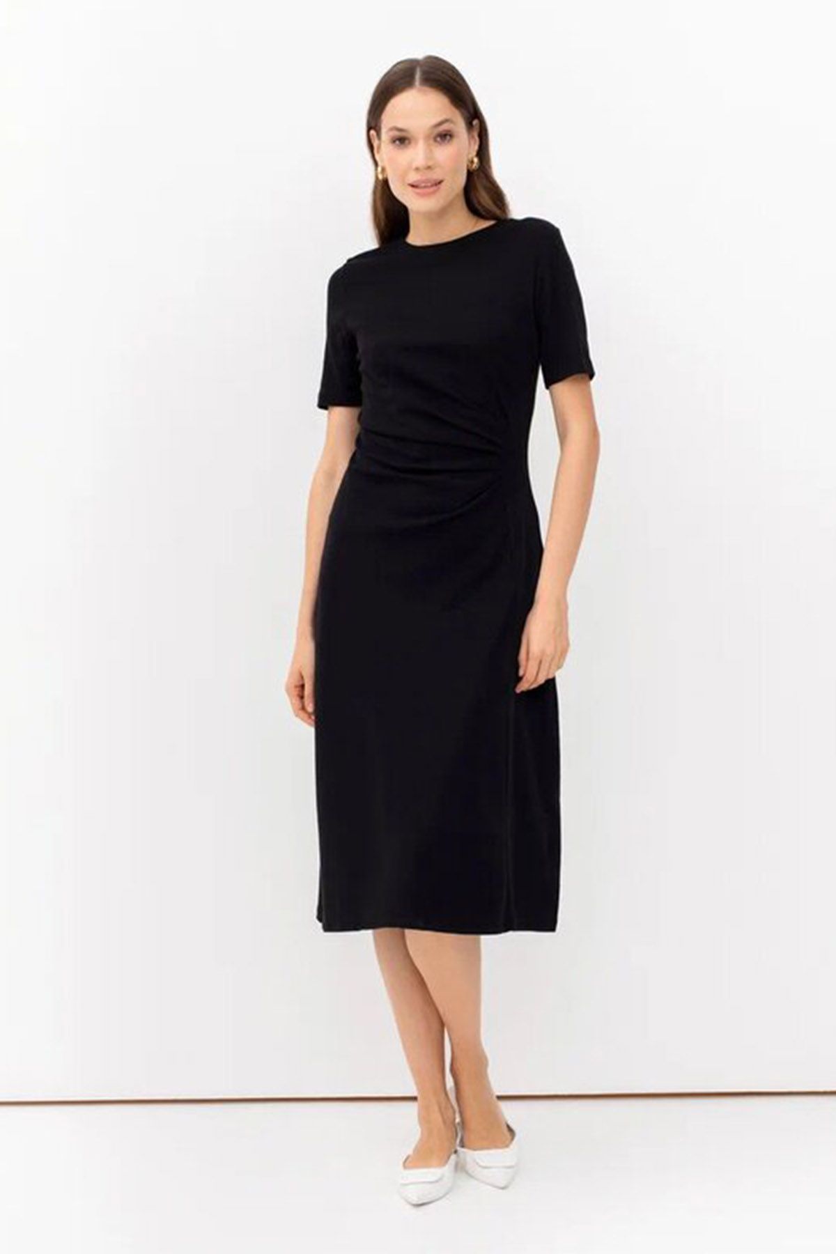 Платье чёрного цвета с драпировкой на талии, 42р