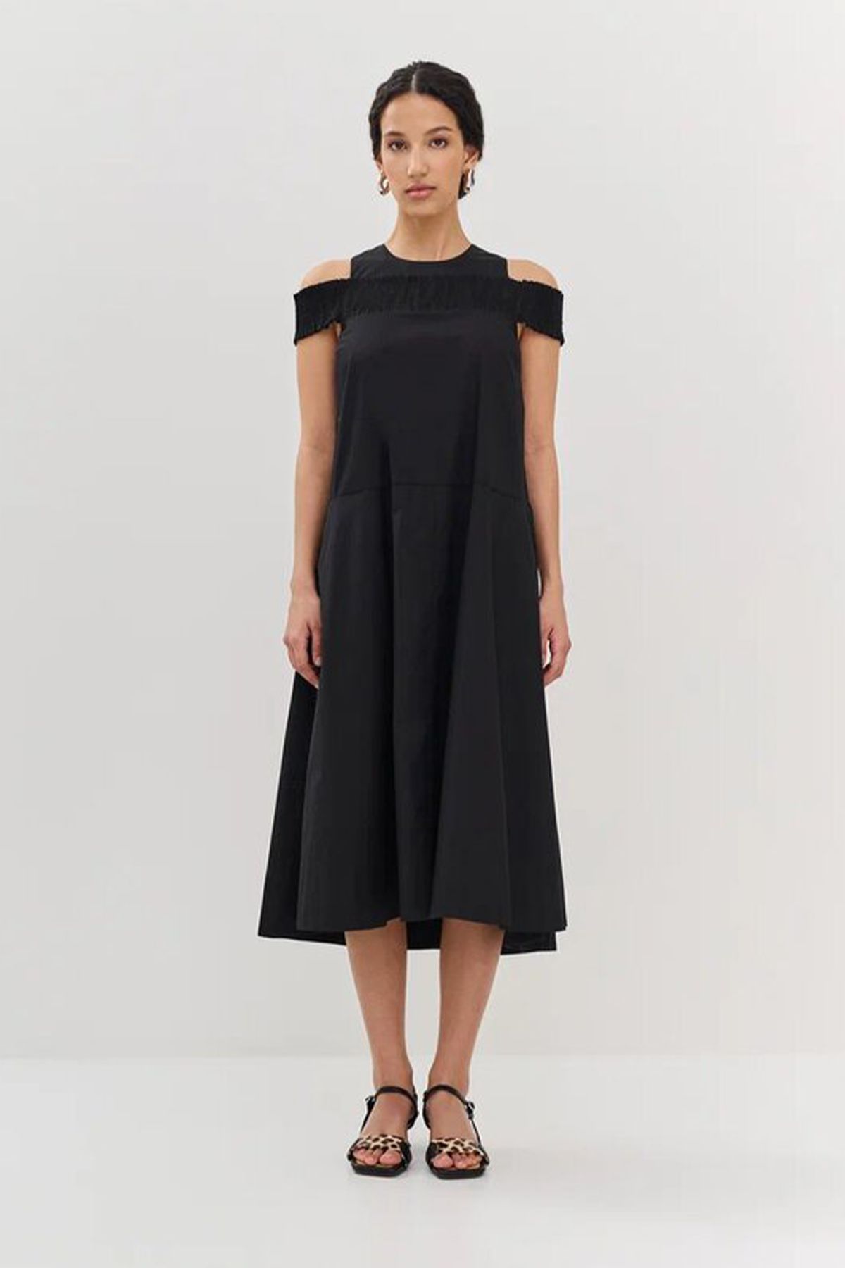 Застежка на молнию на спине добавляет нотку современного дизайна, позволяя легко надевать и снимать платье. Акцент на открытых плечах подчеркивает женственность и сексуальность, а гармоничные линии подчеркивают изящный силуэт. Это платье идеально подходит как для вечерних выходов, так и для утонченных повседневных ансамблей, позволяя вам чувствовать себя уверенно и притягательно в любой ситуации.