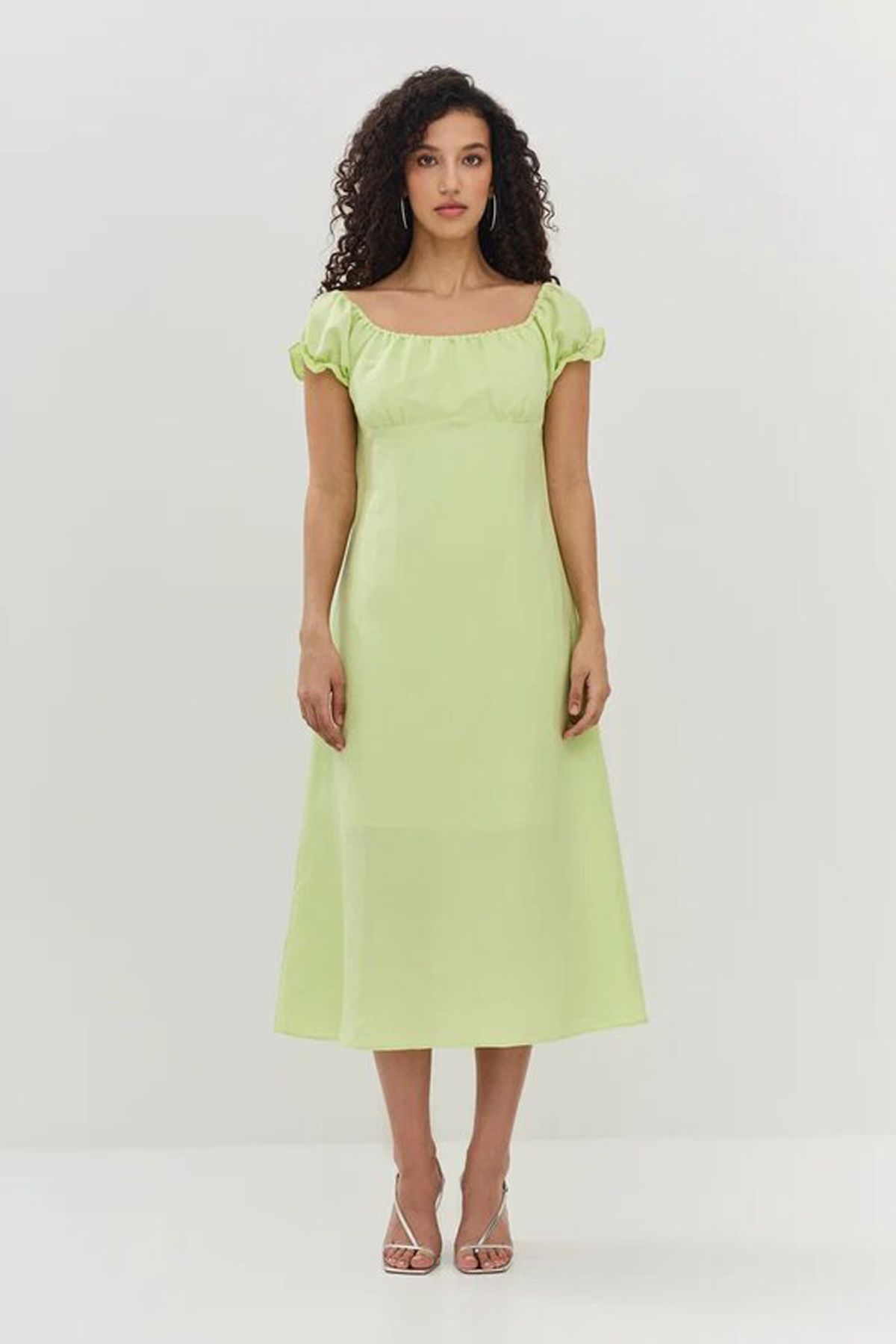 Платье с рюшами на рукавах в цвете лайм, 44р