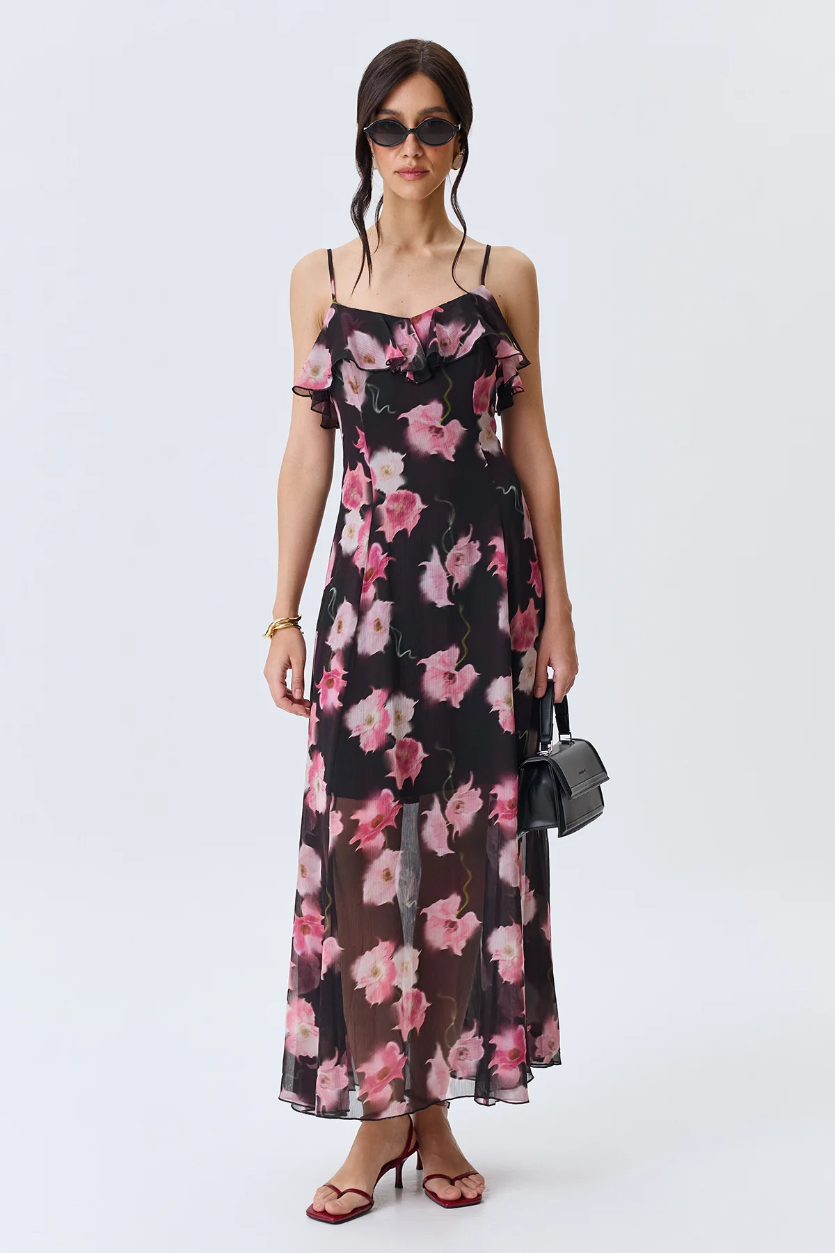 Романтичное платье с ярким цветочным принтом, 46