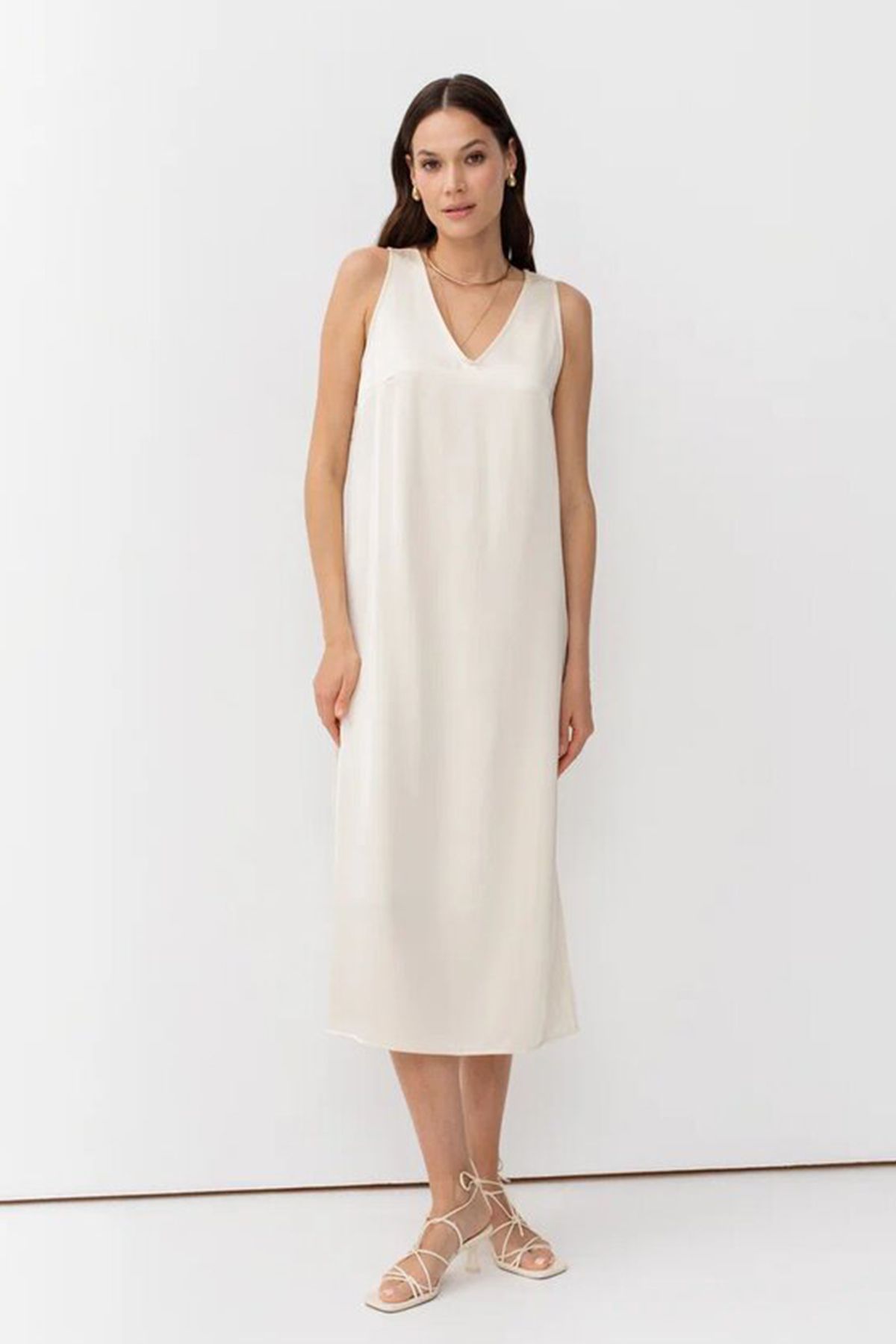 Сатиновое платье с V-образной горловиной, 46р
