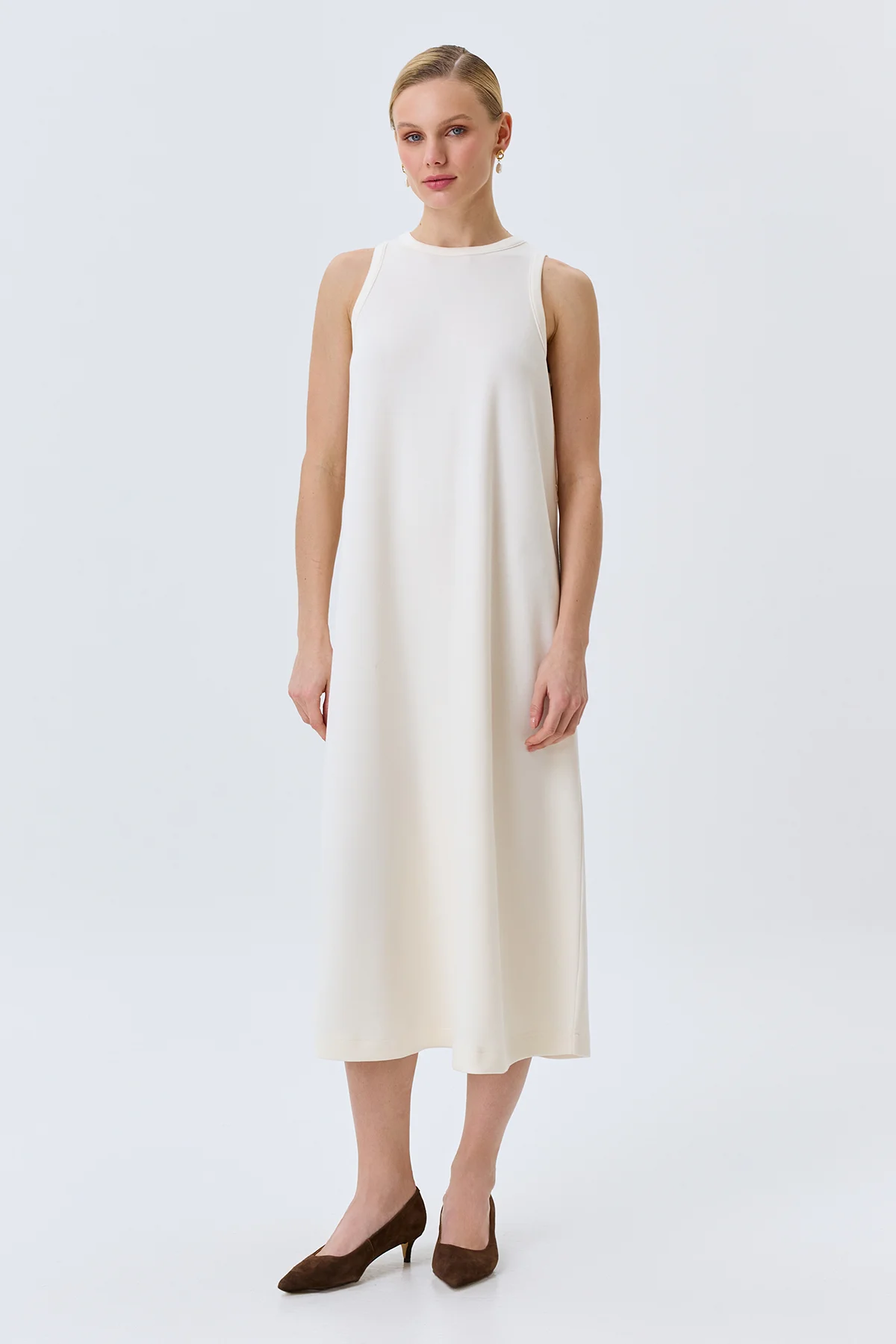 Трикотажное платье-макси с поясом, 46